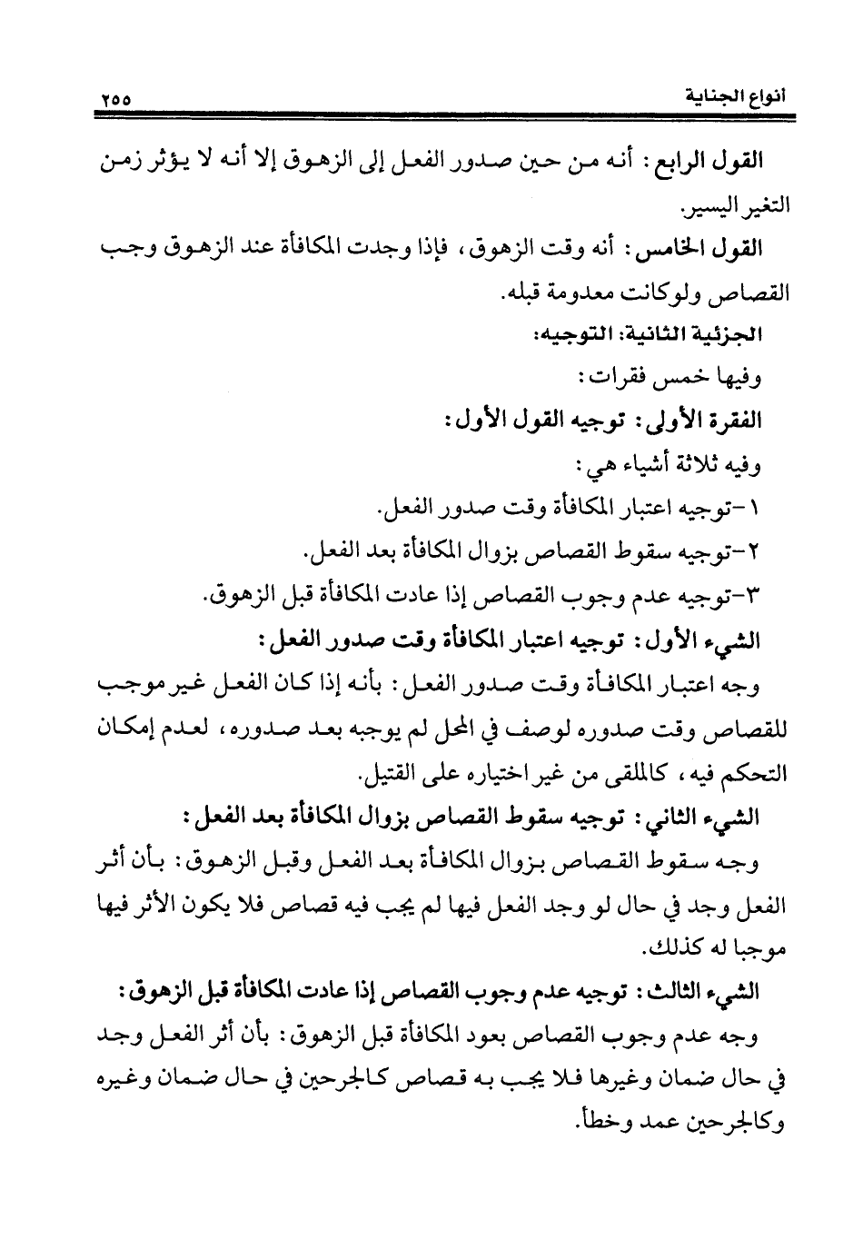 القول الخامس: أنه وقت الزهوق، فإذا وجدت المكافأة عند الزهوق وجب القصاص ولو كانت معدومة قبله.