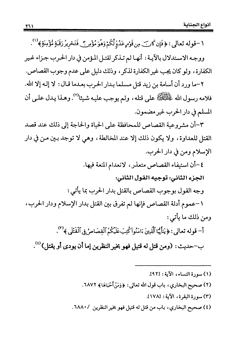 أ - قوله تعالى: {يَاأَيُّهَا الَّذِينَ آمَنُوا كُتِبَ عَلَيْكُمُ الْقِصَاصُ فِي الْقَتْلَى} (¬3).