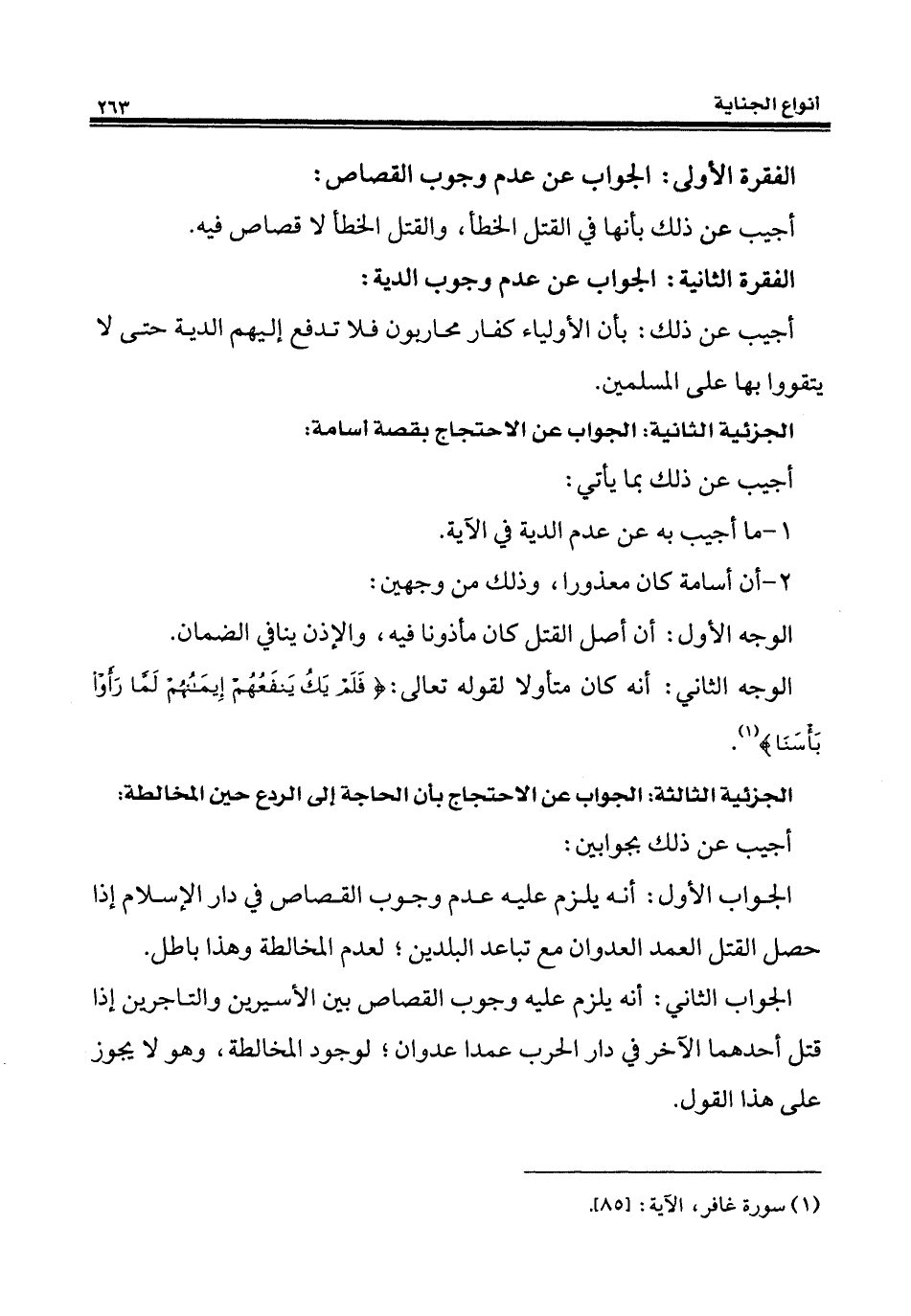 الفقرة الأولى: الجواب عن عدم وجوب القصاص: