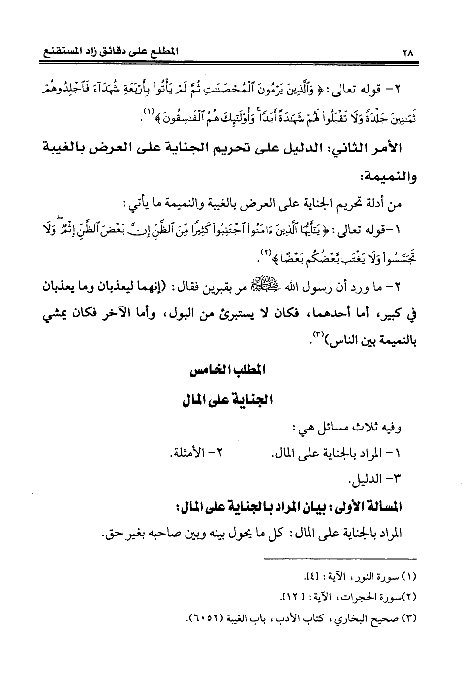 كتاب المطلع على دقائق زاد المستقنع «فقه الجنايات والحدود» (اسم الجزء: 1)