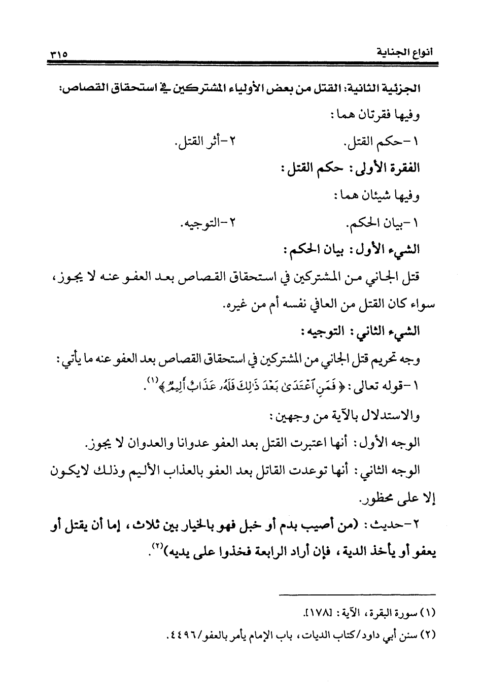 (¬2) سنن أبي داود/ كتاب الديات، باب الإمام يأمر بالعفو/ 4496.