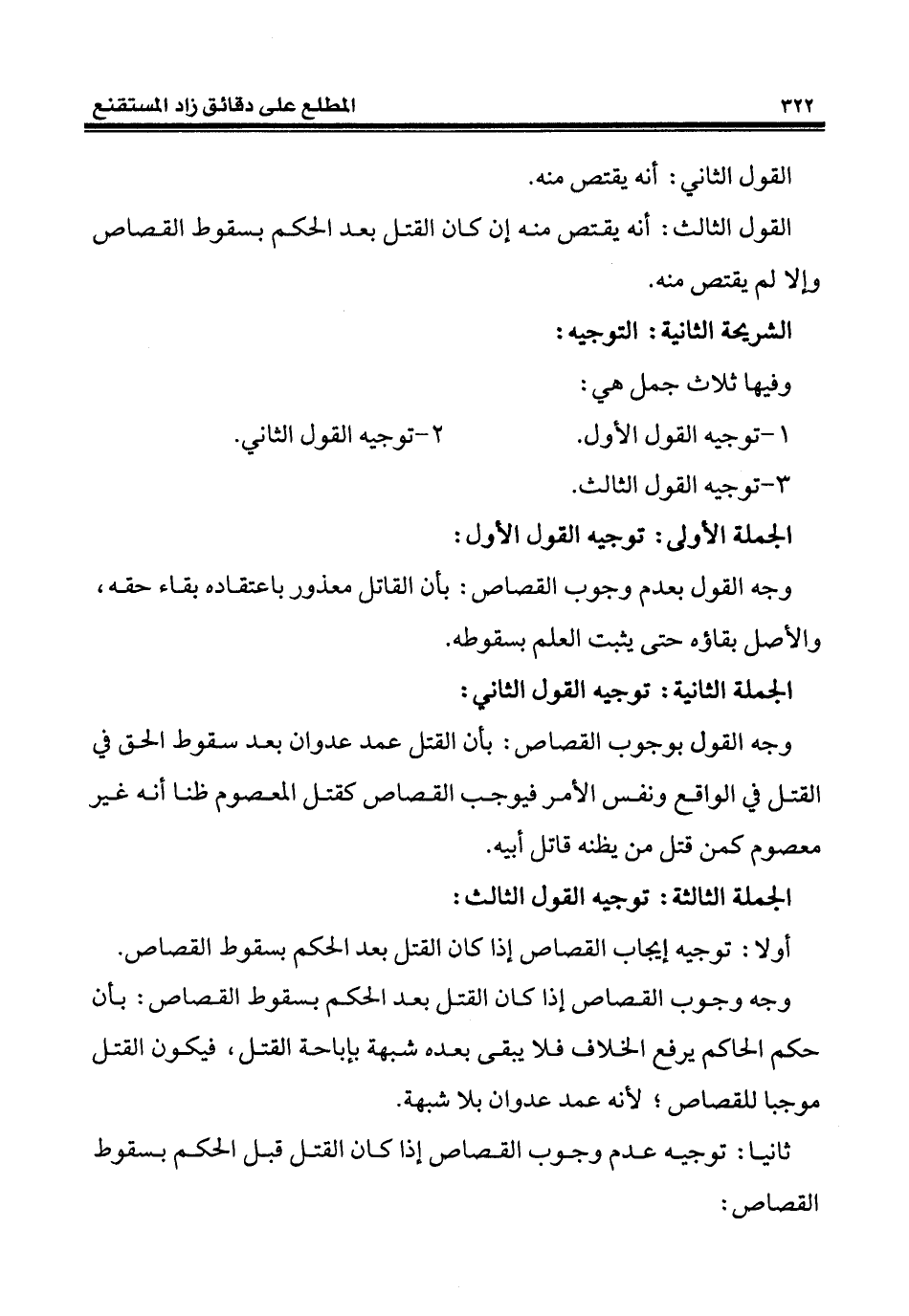 كتاب المطلع على دقائق زاد المستقنع «فقه الجنايات والحدود» (اسم الجزء: 1)