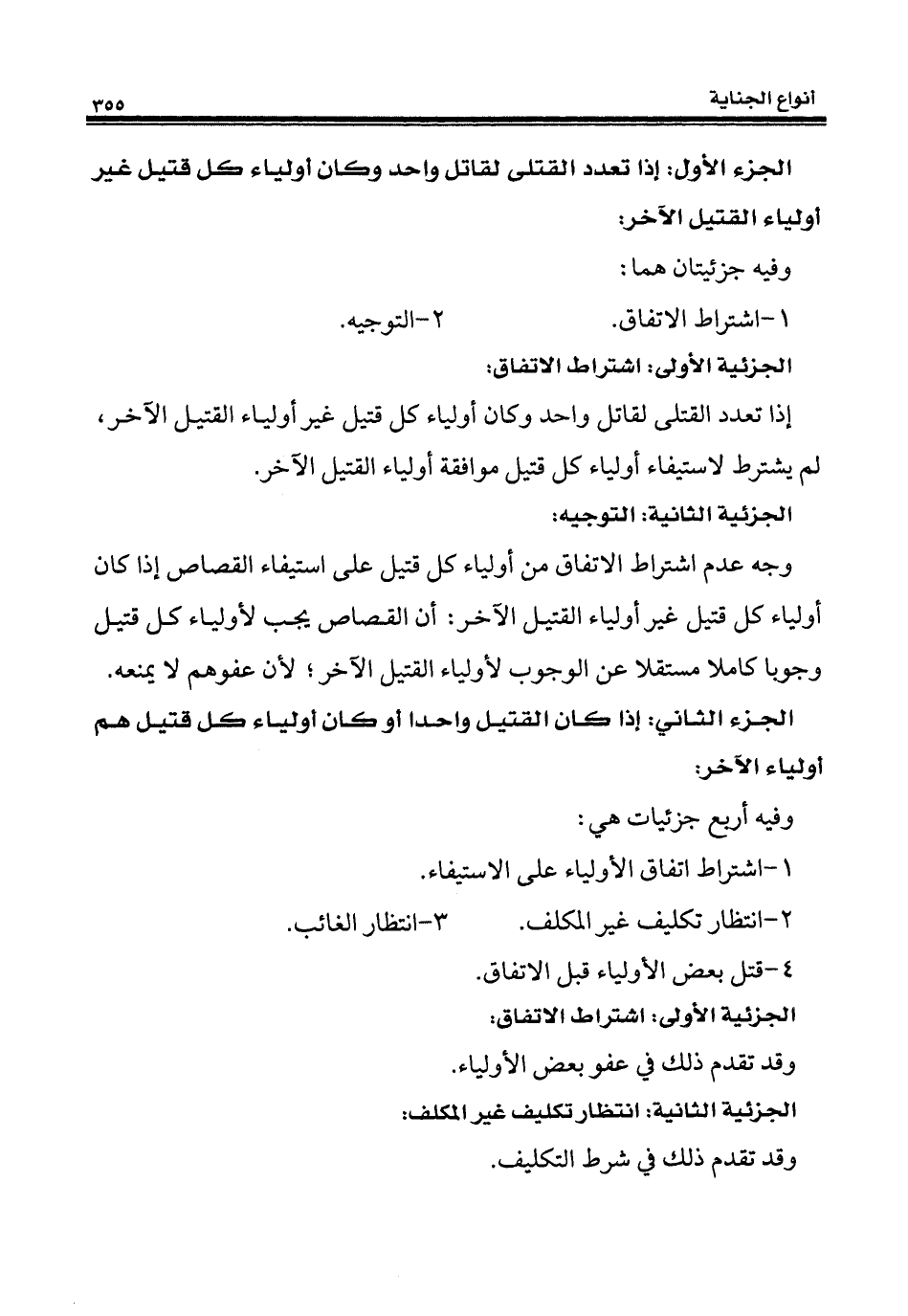 الجزء الأول: إذا تعدد القتلى لقاتل واحد وكان أولياء كل قتيل غير أولياء القتيل الآخر: