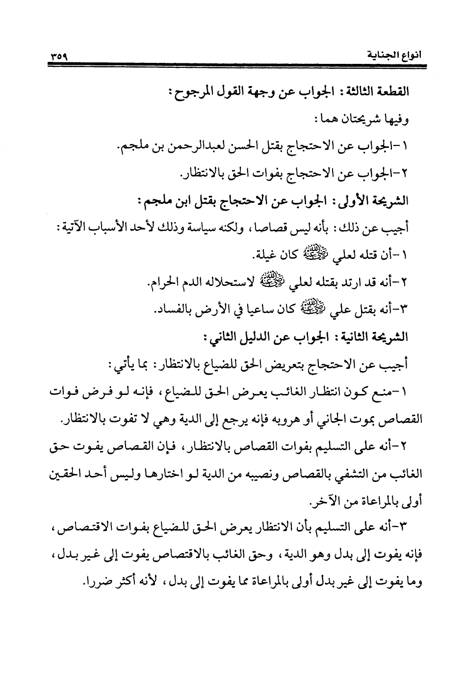 1 - الجواب عن الاحتجاج بقتل الحسن لعبد الرحمن بن ملجم.