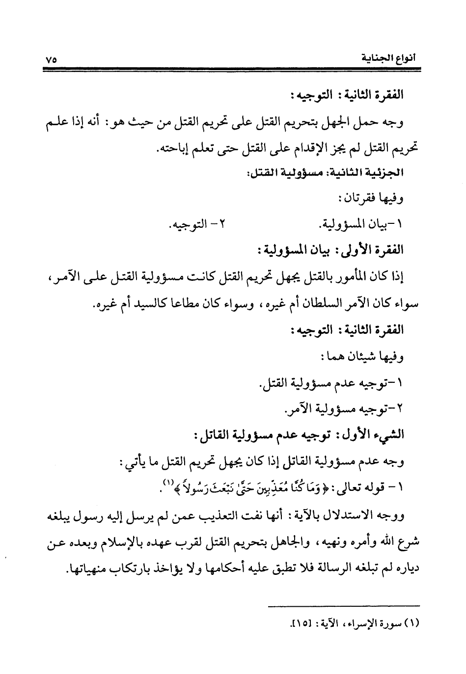 ووجه الاستدلال بالآية: أنها نفت التعذيب عمن لم يرسل إليه رسول يبلغه شرع الله وأمره ونهيه، والجاهل بتحريم القتل لقرب عهده بالإِسلام وبعده عن دياره لم تبلغه الرسالة فلا تطبق عليه أحكامها ولا يؤاخذ بارتكاب منهياتها.