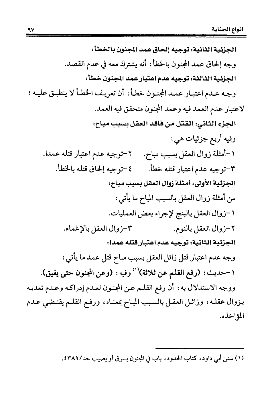 الجزء الثاني: القتل من فاقد العقل بسبب مباح: