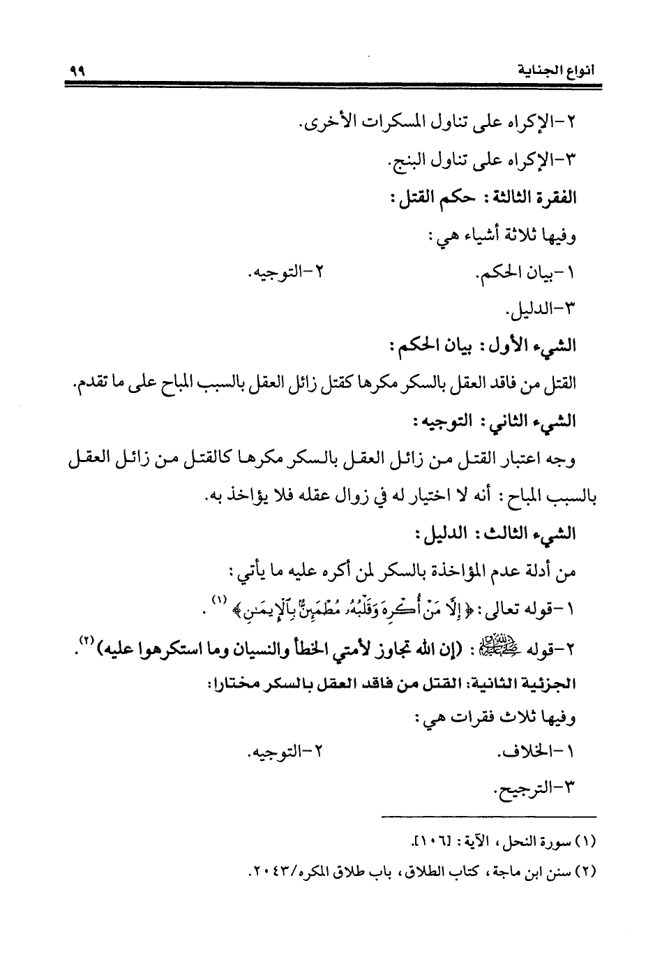 الجزئية الثانية: القتل من فاقد العقل بالسكر مختارا: