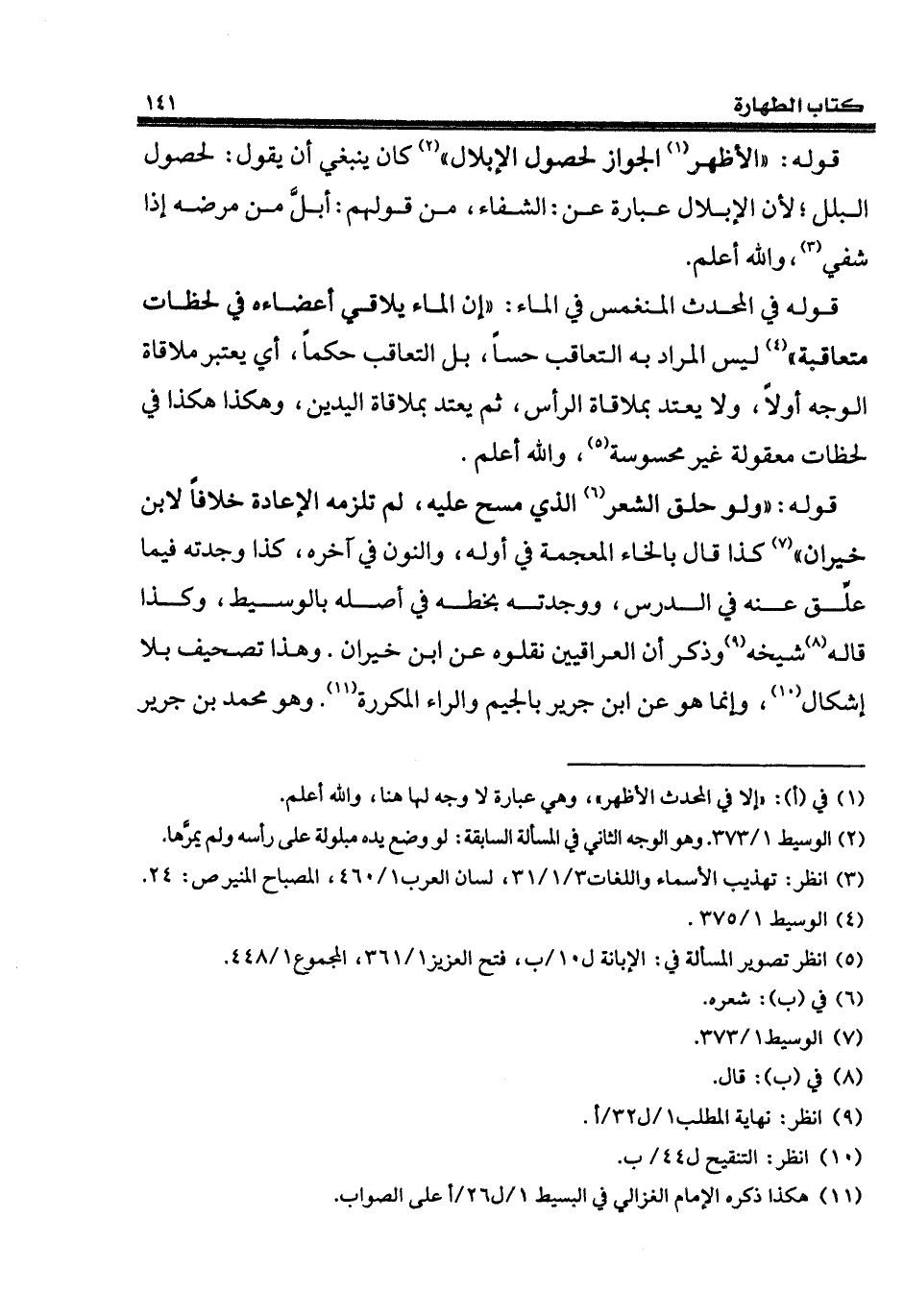 (¬11) هكذا ذكره الإمام الغزالي في البسيط 1/ ل 26/ أعلى الصواب.