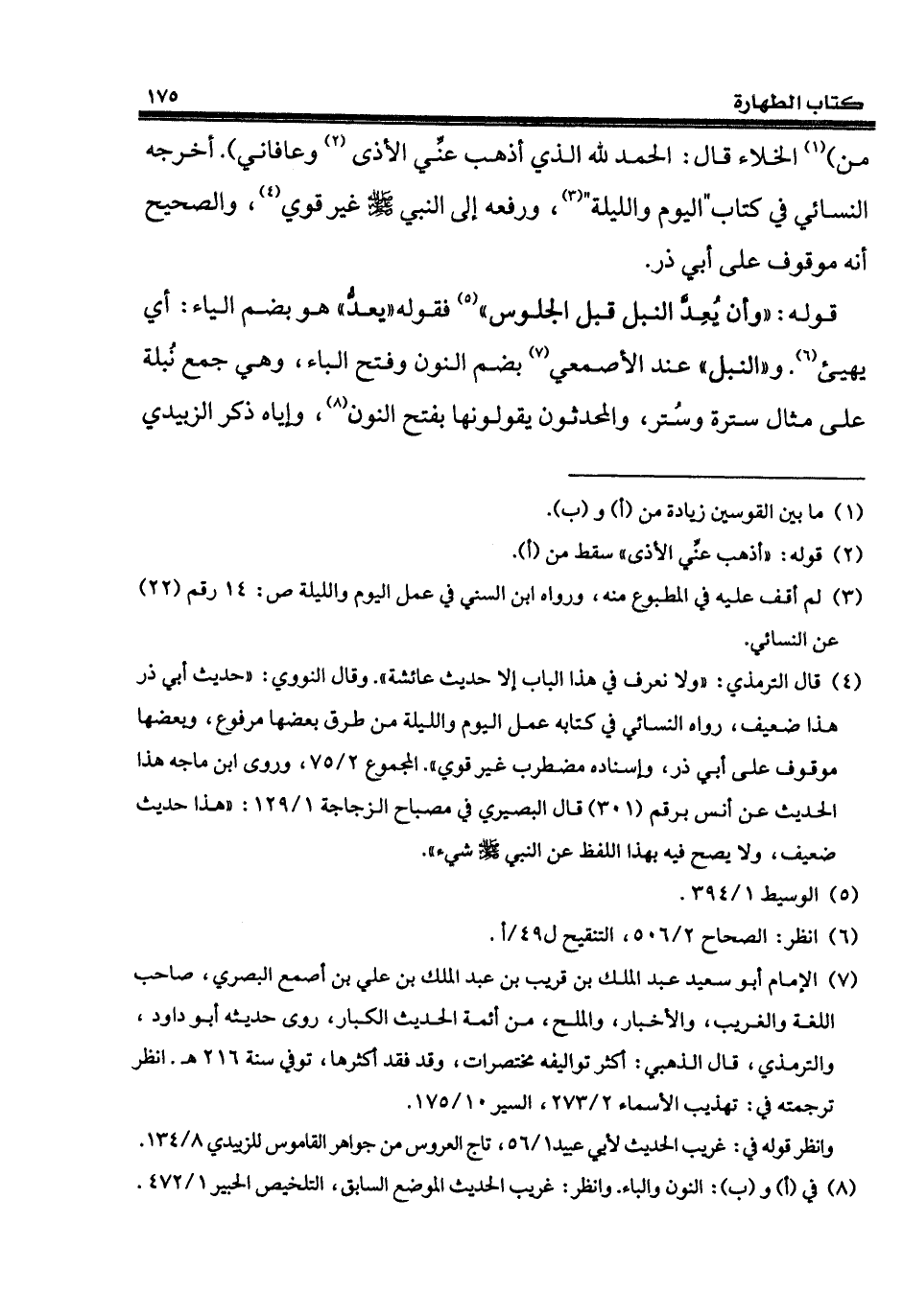 (¬7) الإمام أبو سعيد عبد الملك بن قريب بن عبد الملك بن على بن أصمع البصري، صاحب اللغة والغريب، والأخبار، والملح، من أئمة الحديث الكبار، روى حديثه أبو داود، والترمذي، قال الذهبي: أكثر تواليفه مختصرات، وقد فقد أكثرها، توفي سنة 216 هـ. انظر ترجمته في: تهذيب الأسماء 2/ 273، السير 10/ 175