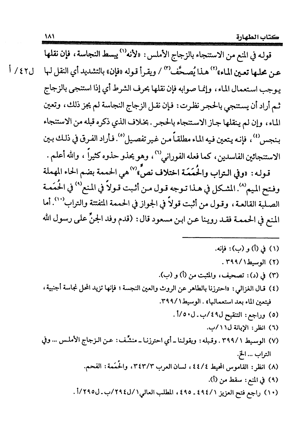 (¬10) راجع فتح العزيز 1/ 494 - 495، المطلب العالي 1/ ل 294/ ب - ل 295/ أ.