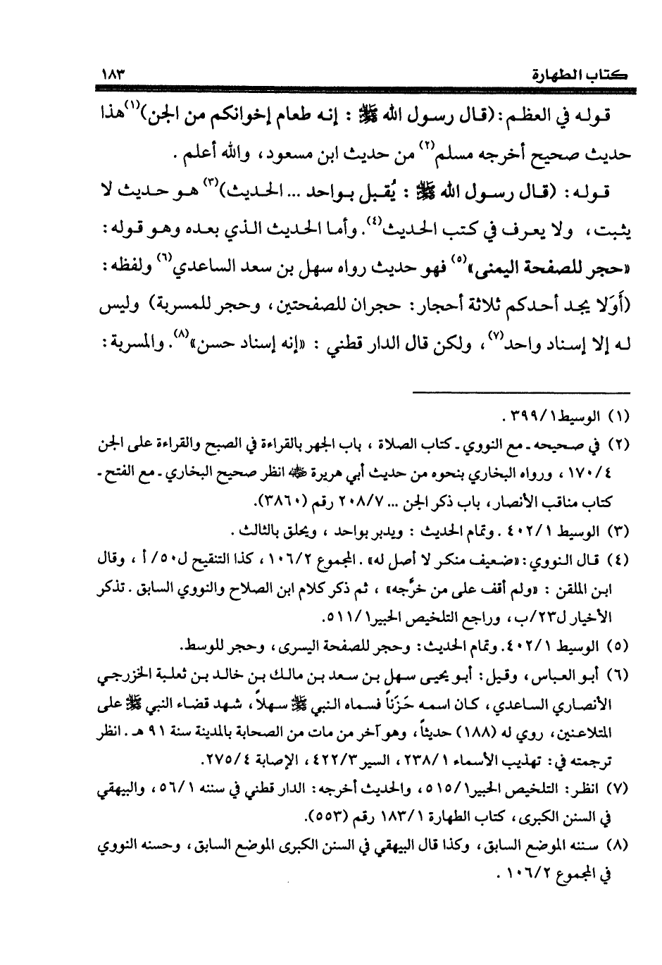 (¬7) انظر: التلخيص الحبير 1/ 515، والحديث أخرجه: الدارقطني في سننه 1/ 56، والبيهقي في السنن الكبرى، كتاب الطهارة 1/ 183 رقم (553).