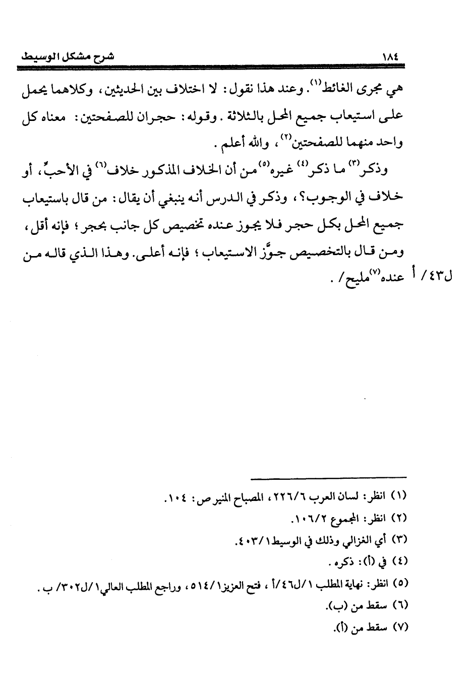 (¬3) أي الغزالي وذلك في الوسيط 1/ 403.