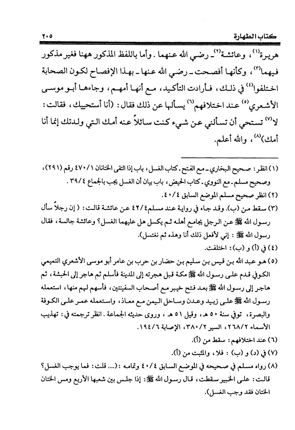 (¬1) انظر: صحيح البخاري - مع الفتح. كتاب الغسل، باب إذا التقى الختانان 1/ 470 رقم (291)، وصحيح مسلم - مع النووي - كتاب الحيض، باب بيان أن الغسل يجب بالجماع 4/ 39.