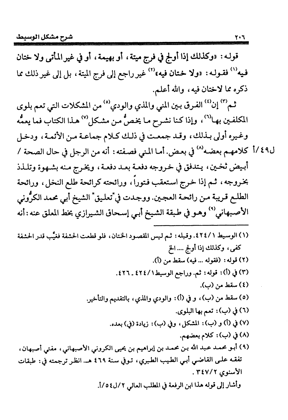 (¬1) الوسيط 1/ 424. وقبله: ثم ليس المقصود الختان، فلو قطعت الحشفة فغيَّب قدر الحشفة كفى، وكذلك أذا أولج .... االخ