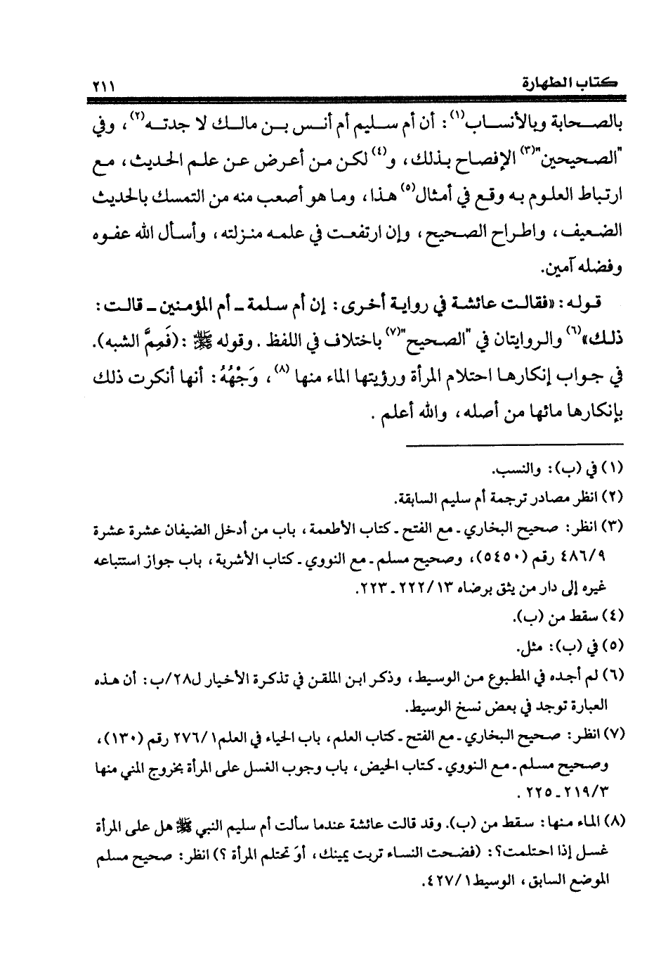 (¬7) انظر: صحيح البخاري - مع الفتح - كتاب العلم، باب الحياء في العلم 1/ 276 رقم (130)، وصحيح مسلم - مع النووي - كتاب الحيض، باب وجوب الغسل على المرأة بخروج المني منها 3/ 219 - 225.