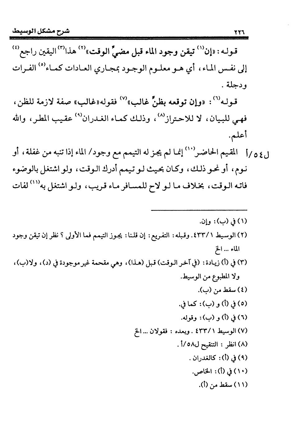 (¬7) الوسيط 1/ 433. وبعده: فقولان ... الخ