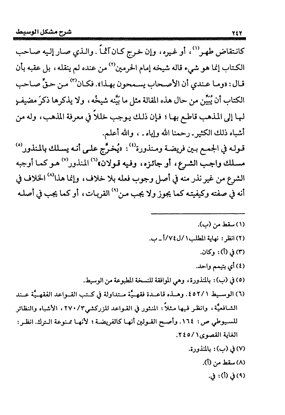 (¬5) في (ب): بالمنذورة، وهي الموافقة للنسخة المطبوعة من الوسيط.