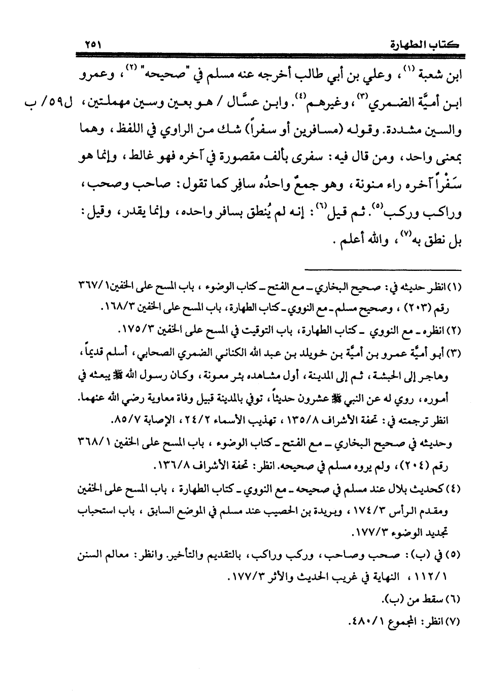 (¬2) انظره - مع النووي - كتاب الطهارة، باب التوقيت في المسح على الخفين 3/ 175.