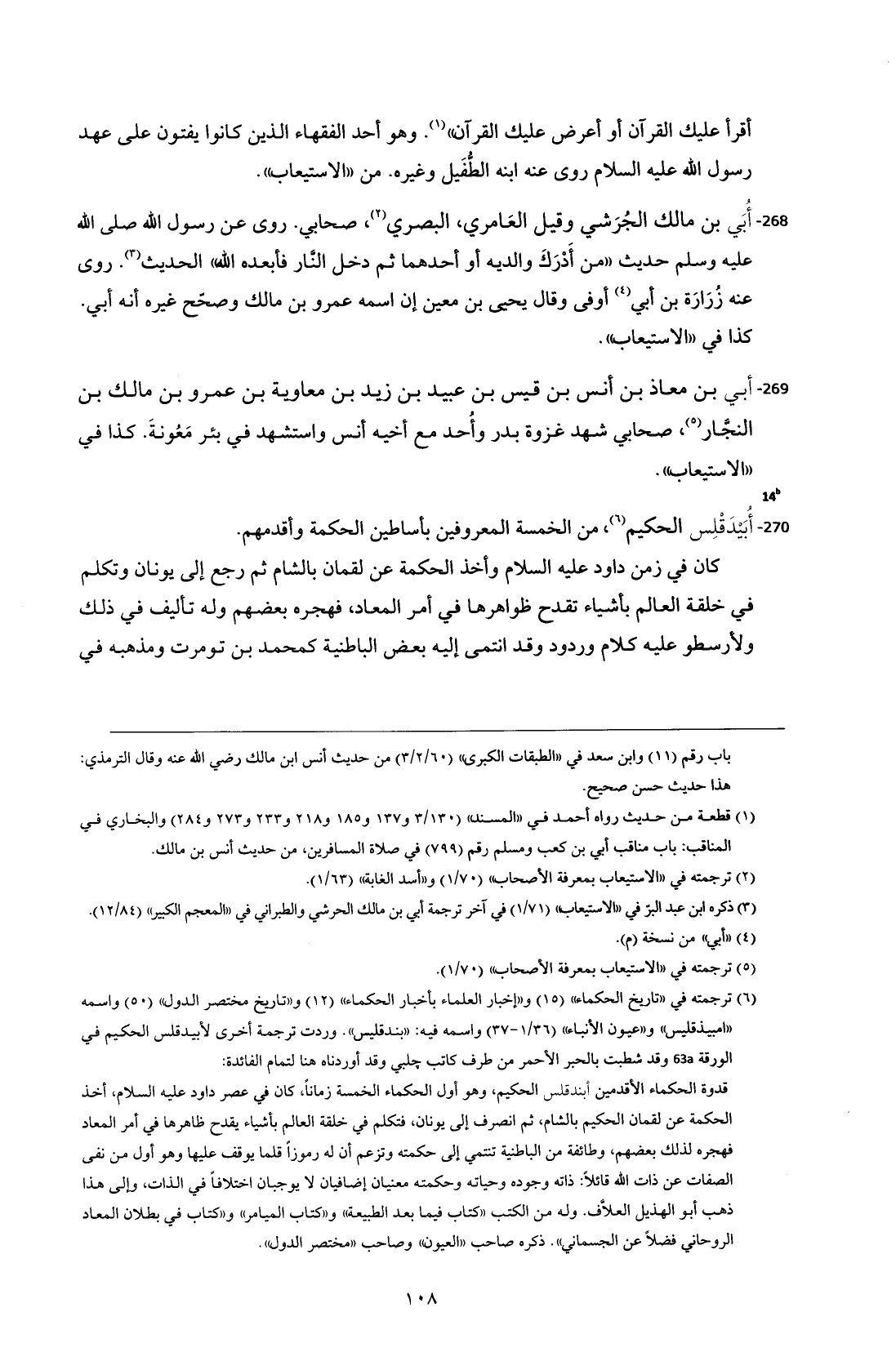 270 - أُبَيْدَقْلِس الحكيم (¬6)، من الخمسة المعروفين بأساطين الحكمة وأقدمهم.