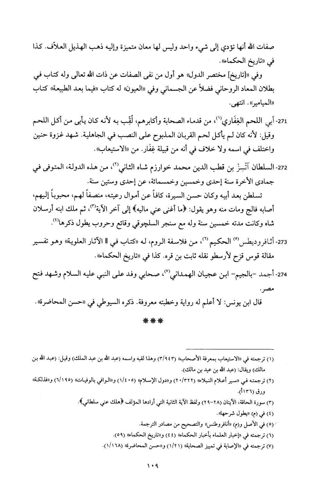 (¬7) ترجمته في "الإصابة في تمييز الصحابة" (1/ 21) و"حسن المحاضرة" (1/ 168).