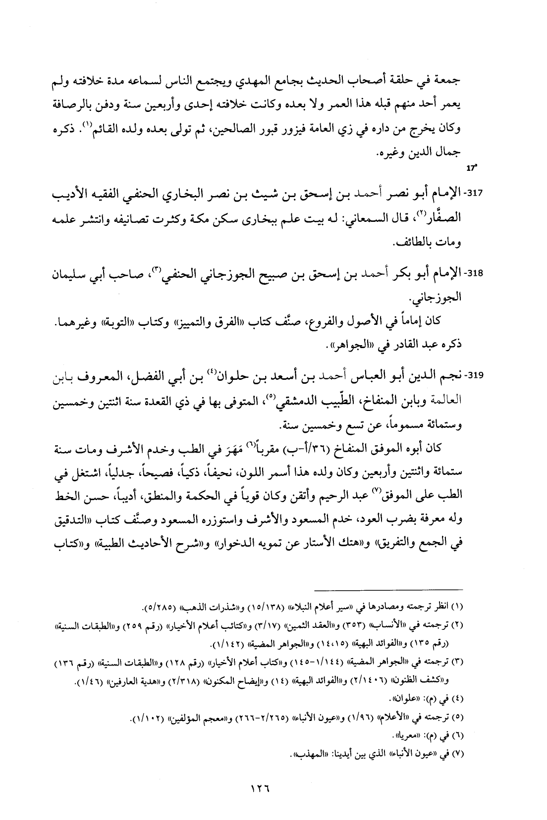 318 - الإمام أبو بكر أحمد بن إسحق بن صبيح الجوزجاني الحنفي (¬3)، صاحب أبي سليمان الجوزجاني.