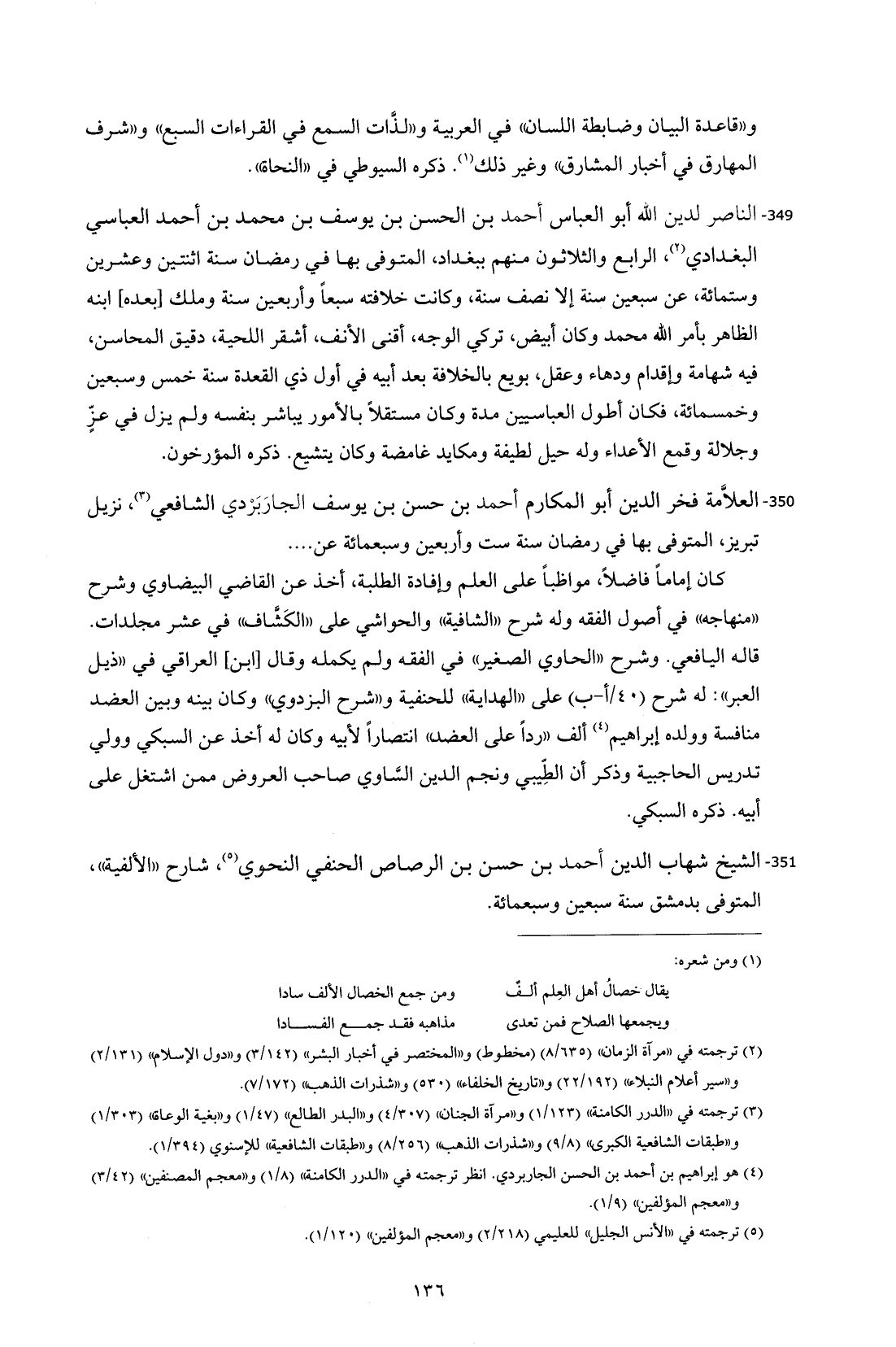 351 - الشيخ شهاب الدين أحمد بن حسن بن الرصاص الحنفي النحوي (¬5)، شارح "الألفية"، المتوفى بدمشق سنة سبعين وسبعمائة.