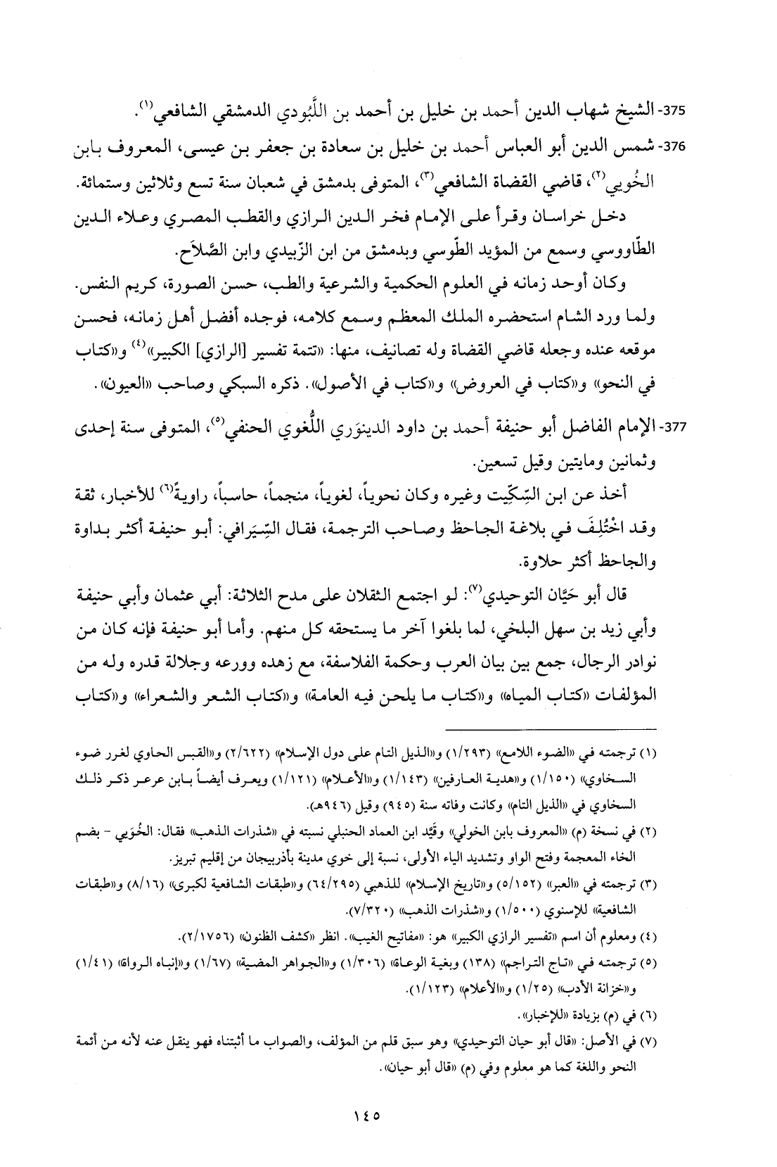 376 - شمس الدين أبو العباس أحمد بن خليل بن سعادة بن جعفر بن عيسى، المعروف بابن الخُويي (¬2)، قاضي القضاة الشافعي (¬3)، المتوفى بدمشق في شعبان سنة تسع وثلاثين وستمائة.