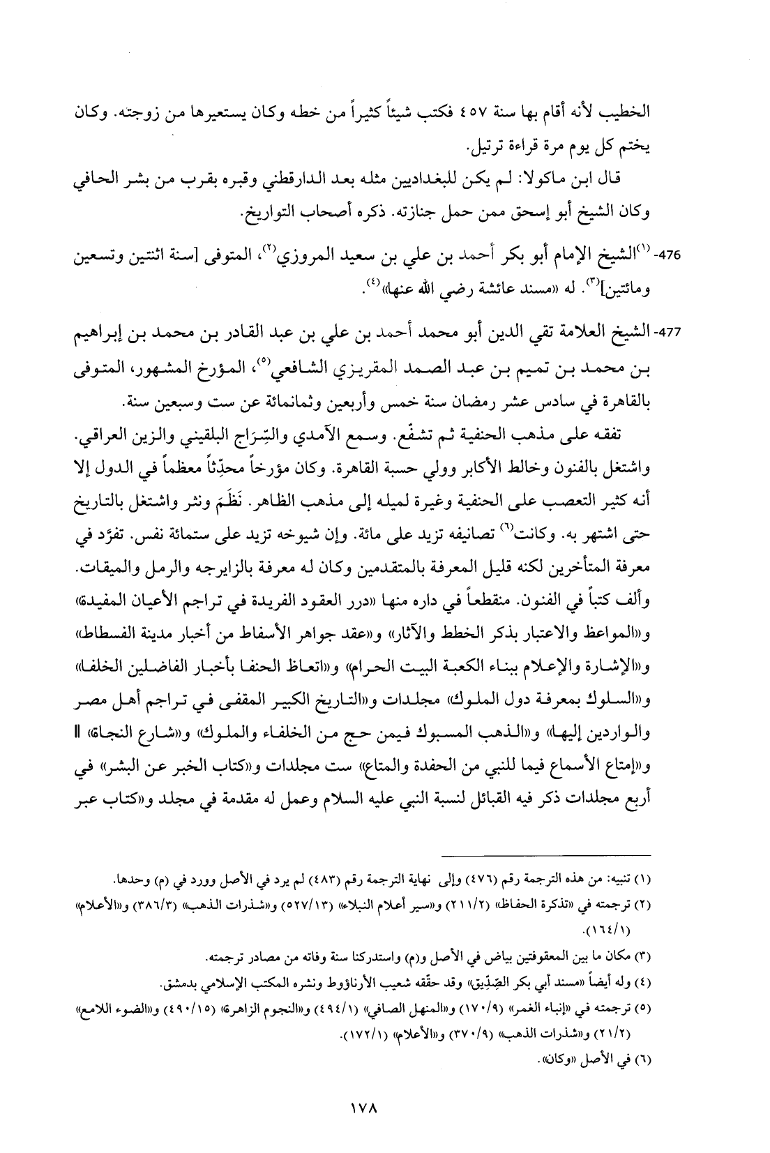 (¬1) تنبيه: من هذه الترجمة رقم (476) وإلى نهاية الترجمة رقم (483) لم يرد في الأصل وورد في (م) وحدها.