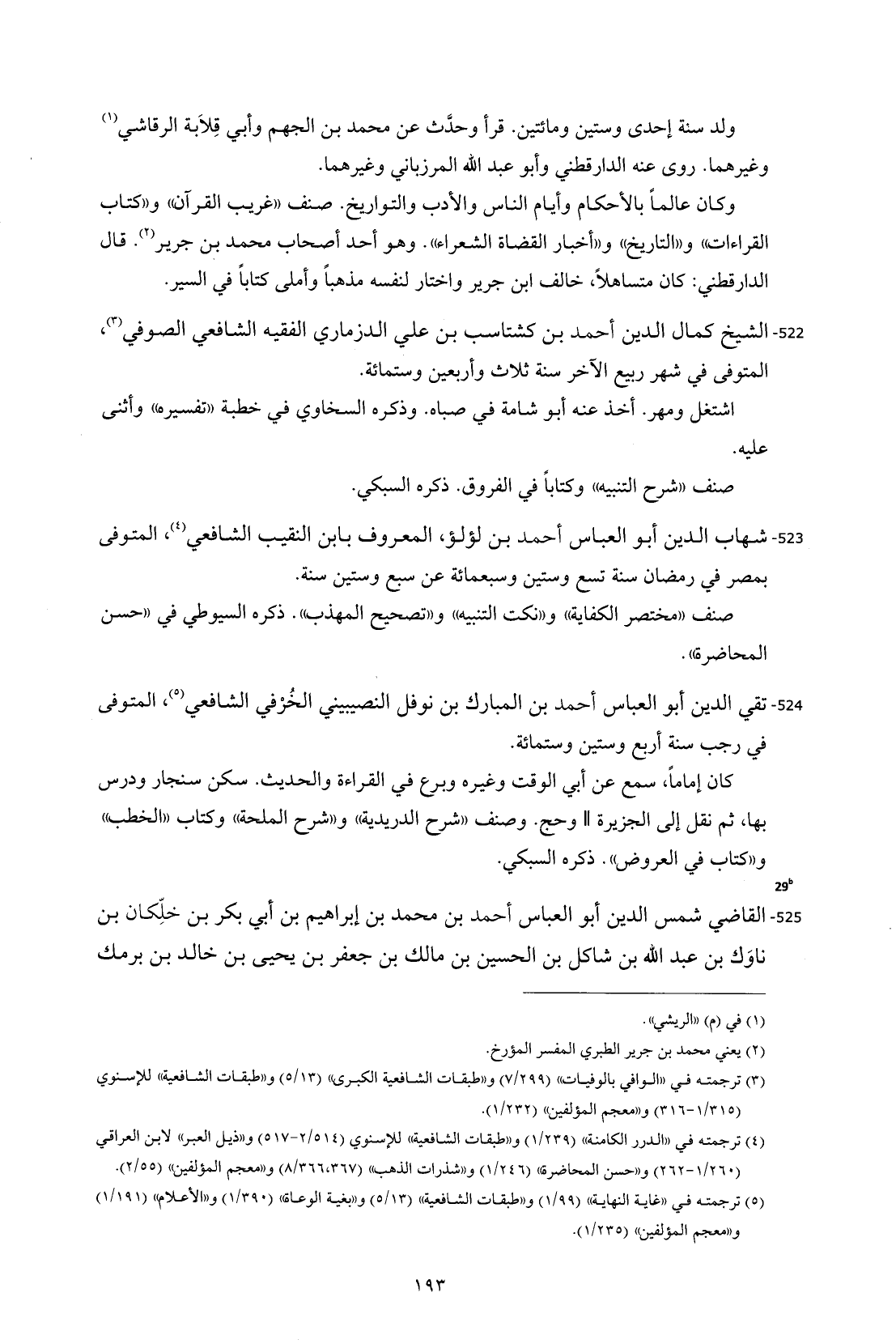 525 - القاضي شمس الدين أبو العباس أحمد بن محمد بن إبراهيم بن أبي بكر بن خلِّكان بن ناوَك بن عبد الله بن شاكل بن الحسين بن مالك بن جعفر بن يحيى بن خالد بن برمك