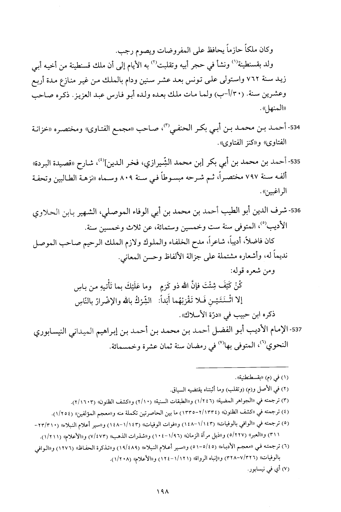 537 - الإمام الأديب أبو الفضل أحمد بن محمد بن أحمد بن إبراهيم الميداني النيسابوري النحوي (¬6)، المتوفى بها (¬7) في رمضان سنة ثمان عشرة وخمسمائة.