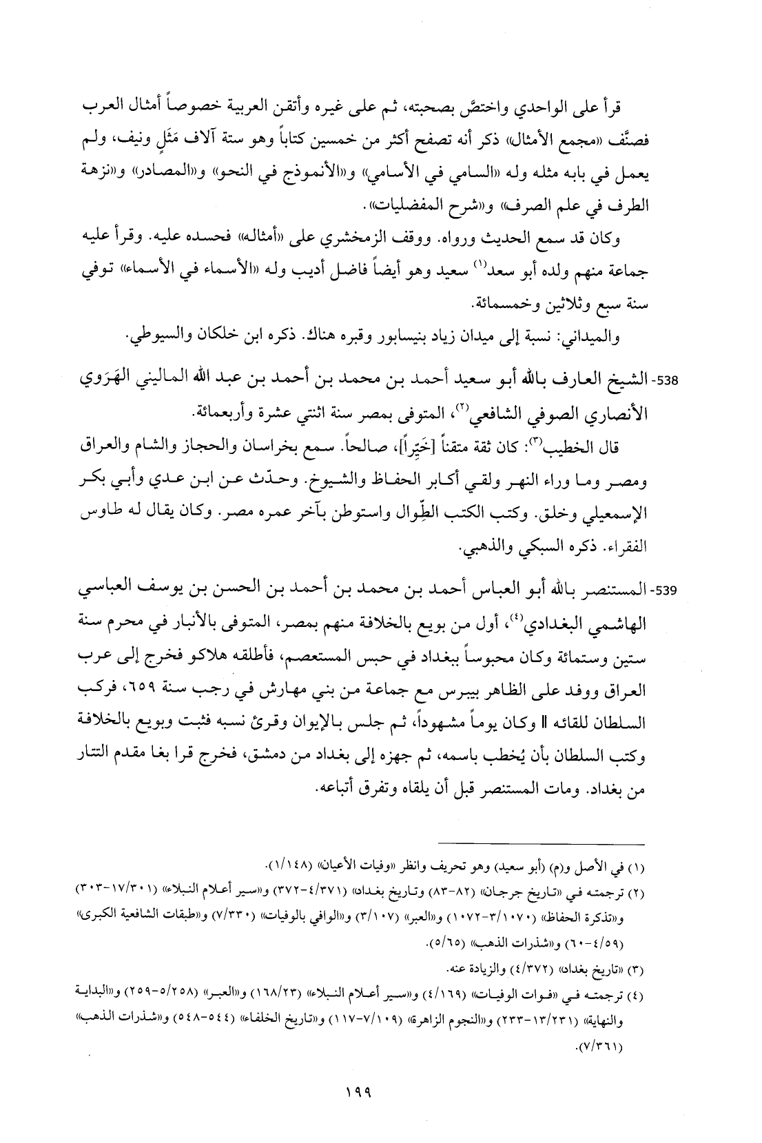 538 - الشيخ العارف بالله أبو سعيد أحمد بن محمد بن أحمد بن عبد الله الماليني الهَرَوي الأنصاري الصوفي الشافعي (¬2)، المتوفى بمصر سنة اثنتي عشرة وأربعمائة.