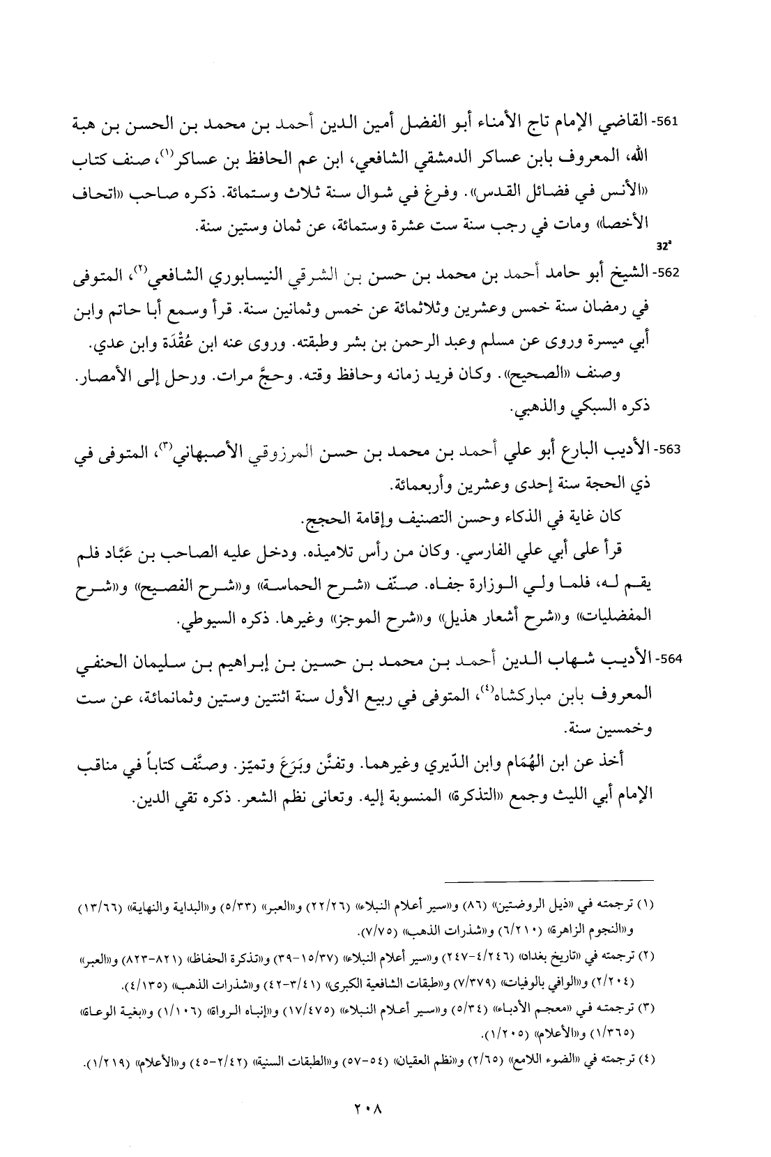 561 - القاضي الإمام تاج الأمناء أبو الفضل أمين الدين أحمد بن محمد بن الحسن بن هبة الله، المعروف بابن عساكر الدمشقي الشافعي، ابن عم الحافظ بن عساكر (¬1)، صنف كتاب "الأنس في فضائل القدس". وفرغ في شوال سنة ثلاث وستمائة. ذكره صاحب "اتحاف الأخصا" ومات في رجب سنة ست عشرة وستمائة، عن ثمان وستين سنة.