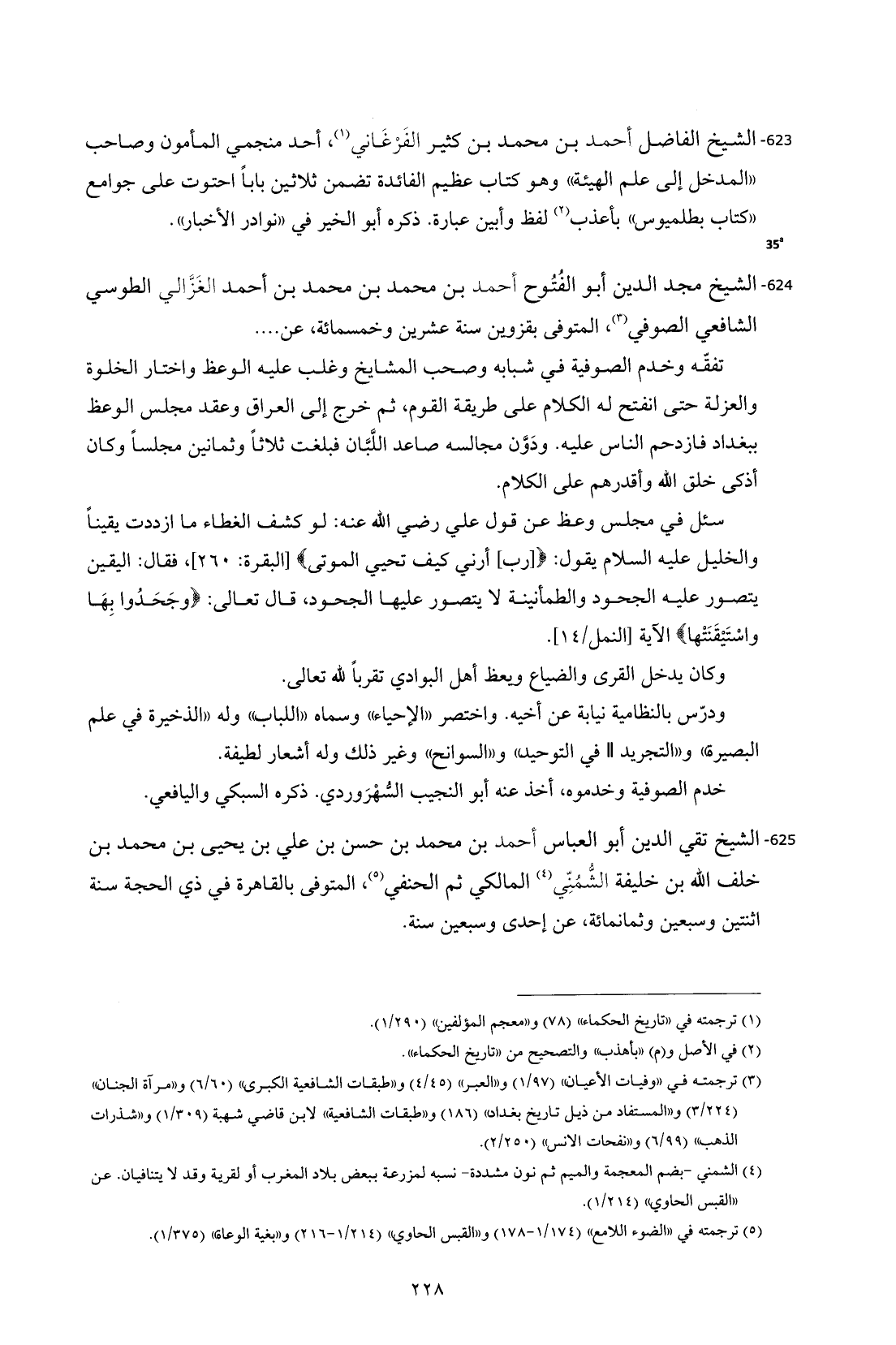 624 - الشيخ مسجد الدين أبو الفُتُوح أحمد بن محمد بن محمد بن أحمد الغَزَّالي أبي الطوسي الشافعي الصوفي (¬3)، المتوفى بقزوين سنة عشرين وخمسمائة، عن ....