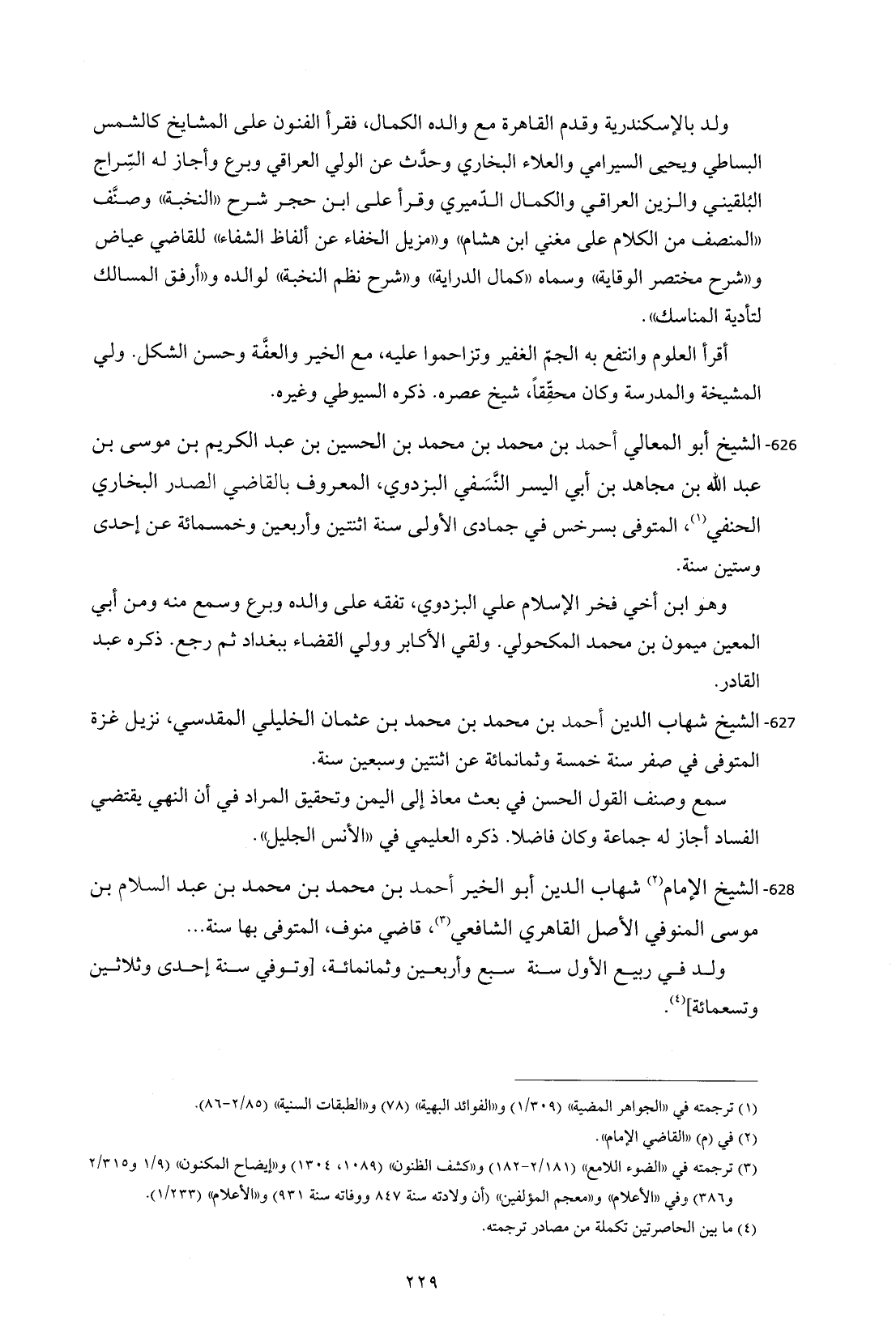 (¬3) ترجمته في "الضوء اللامع" (2/ 181 - 182) و"كشف الظنون" (1089، 1304) و"إيضاح المكنون" (9/ 1 و 2/ 315 و 386) وفي "الأعلام" و"معجم المؤلفين" (أن ولادته سنة 847 ووفاته سنة 931) و"الأعلام" (1/ 233).