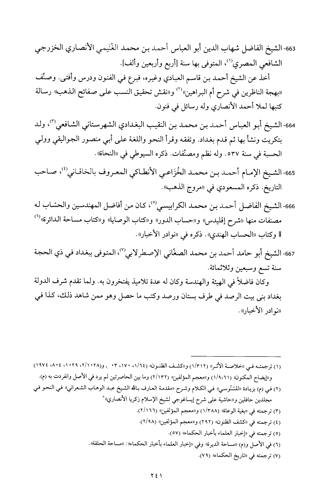 667 - الشيخ أبو حامد أحمد بن محمد الصغّاني الإصطرلابي (¬7)، المتوفى ببغداد في ذي الحجة سنة تسع وسبعين وثلاثمائة.