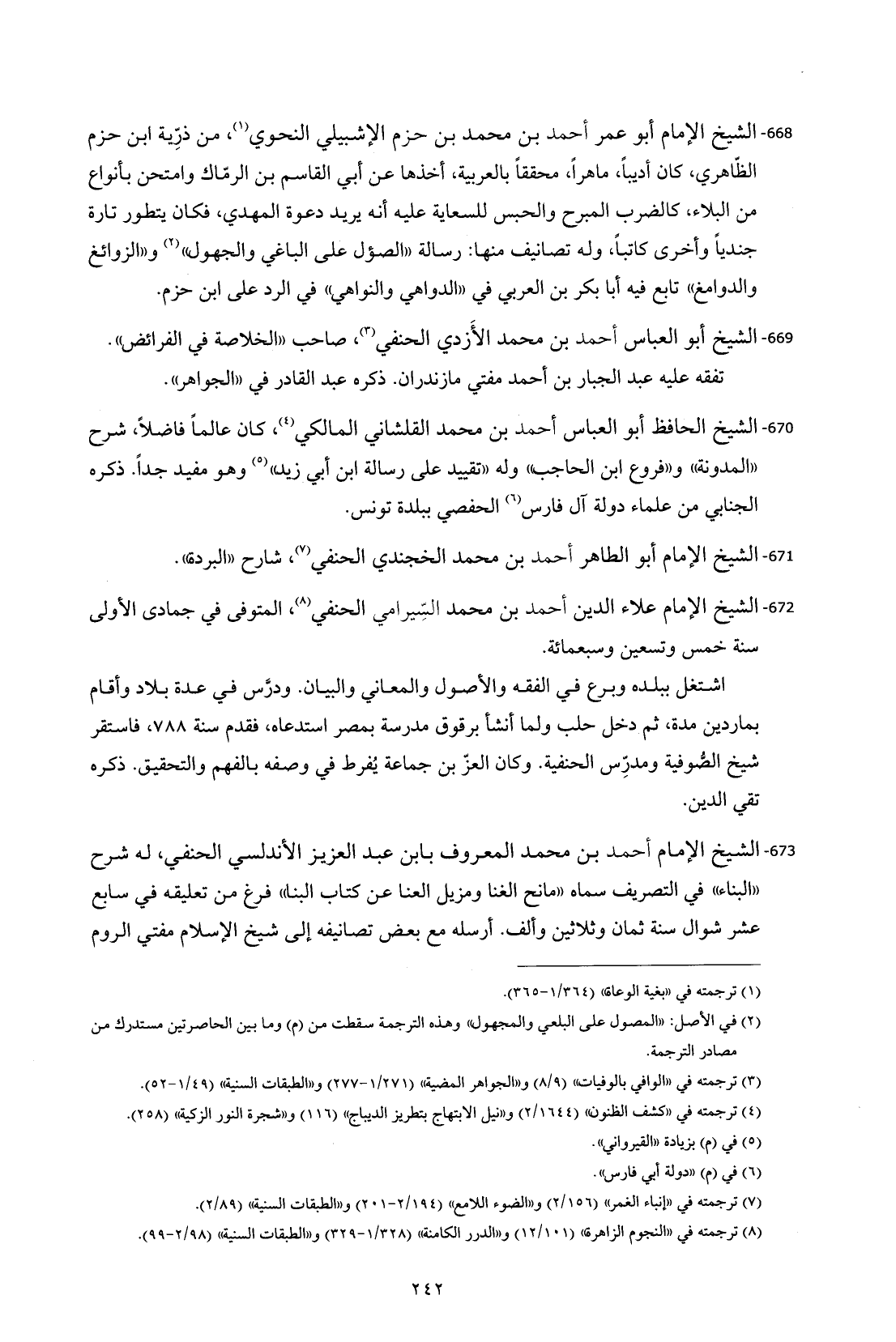 669 - الشيخ أبو العباس أحمد بن محمد الأَزدي الحنفي (¬3)، صاحب "الخلاصة في الفرائض".