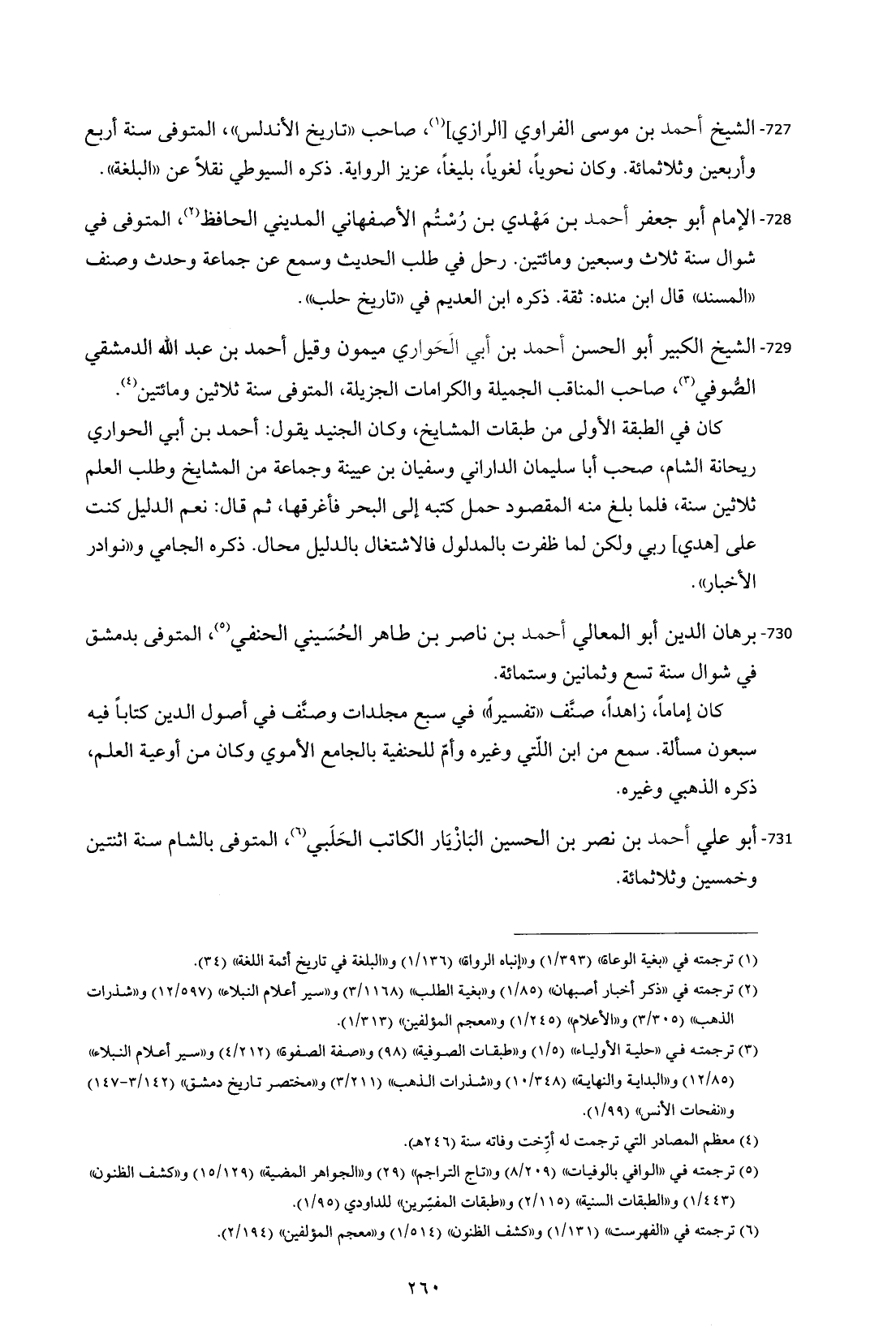 729 - الشيخ الكبير أبو الحسن أحمد بن أبي الحَواري ميمون وقيل أحمد بن عبد الله الدمشقي الصُّوفي (¬3)، صاحب المناقب الجميلة والكرامات الجزيلة، المتوفى سنة ثلاثين ومائتين (¬4).