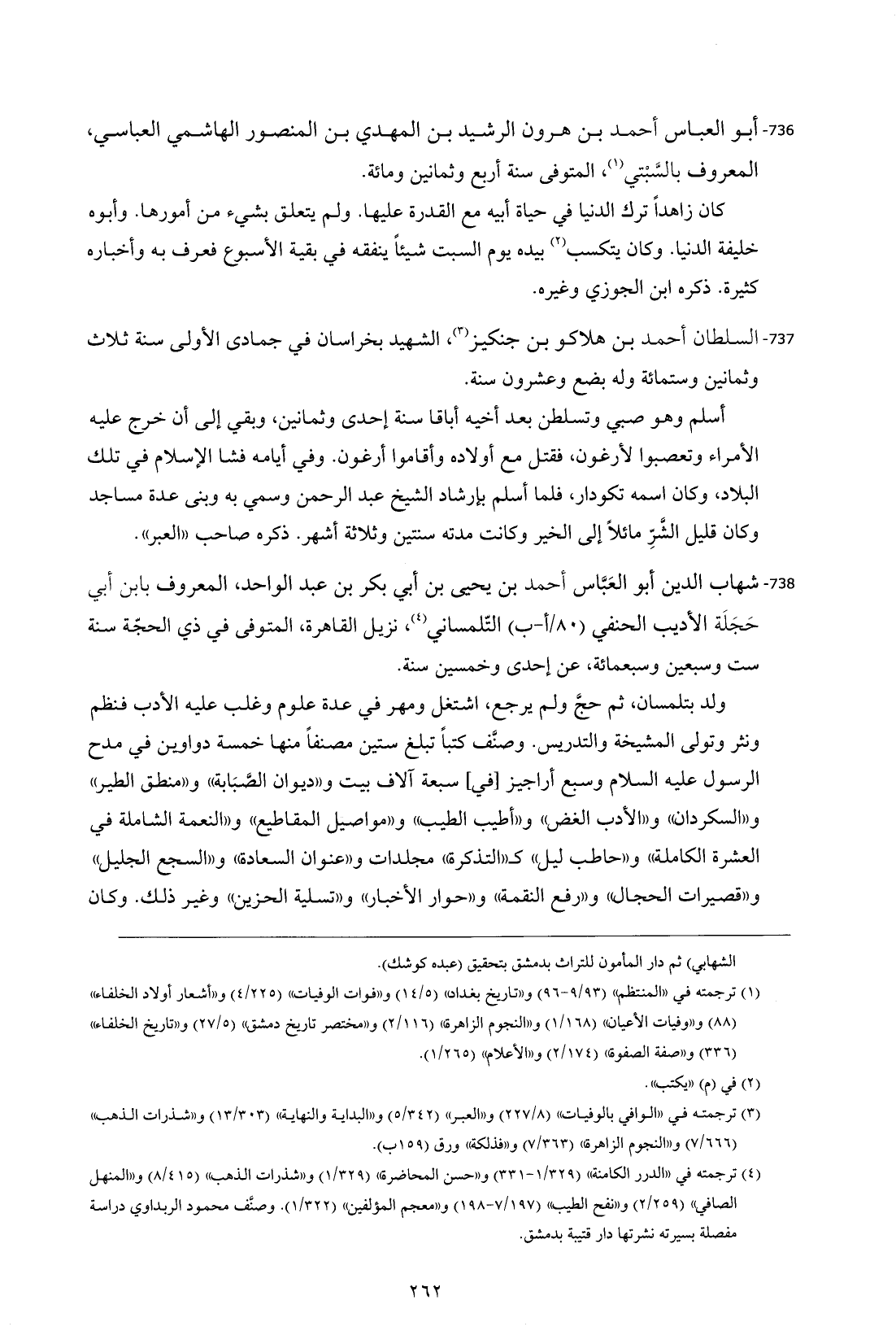 737 - السلطان أحمد بن هلاكو بن جنكيز (¬3)، الشهيد بخراسان في جمادى الأولى سنة ثلاث وثمانين وستمائة وله بضع وعشرون سنة.