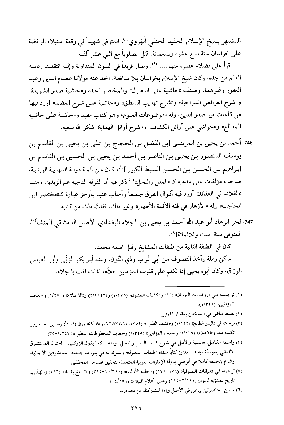 747 - فخر الزهاد أبو عبد الله أحمد بن يحيى بن الجلّاء البغدادي الأصل الدمشقي المنشأ (¬5)، المتوفى سنة [ست وثلاثمائة] (¬6).