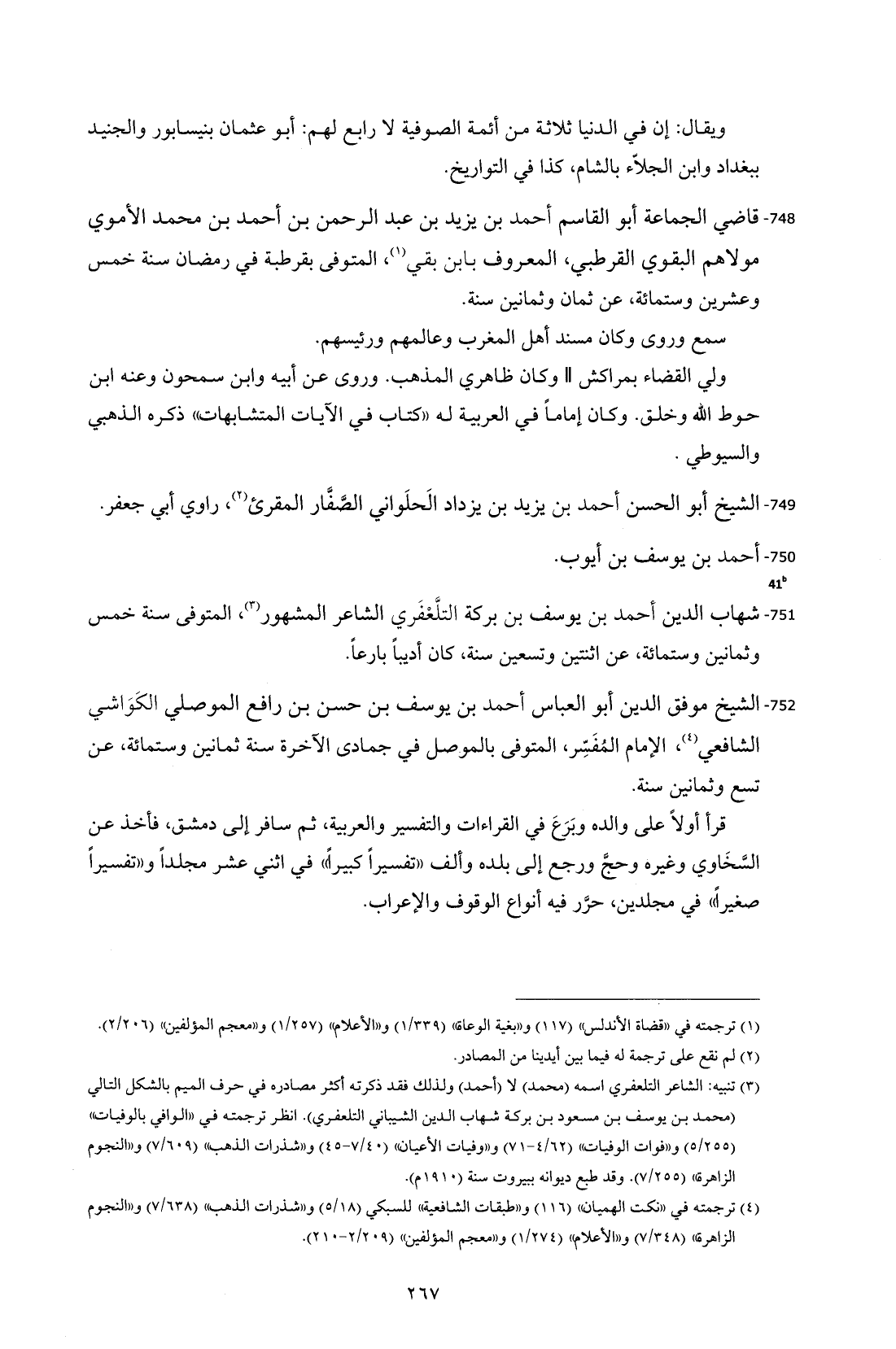 752 - الشيخ موفق الدين أبو العباس أحمد بن يوسف بن حسن بن رافع الموصلي الكَوَاشي الشافعي (¬4)، الإمام المُفَسِّر، المتوفى بالموصل في جمادى الآخرة سنة ثمانين وستمائة، عن تسع وثمانين سنة.
