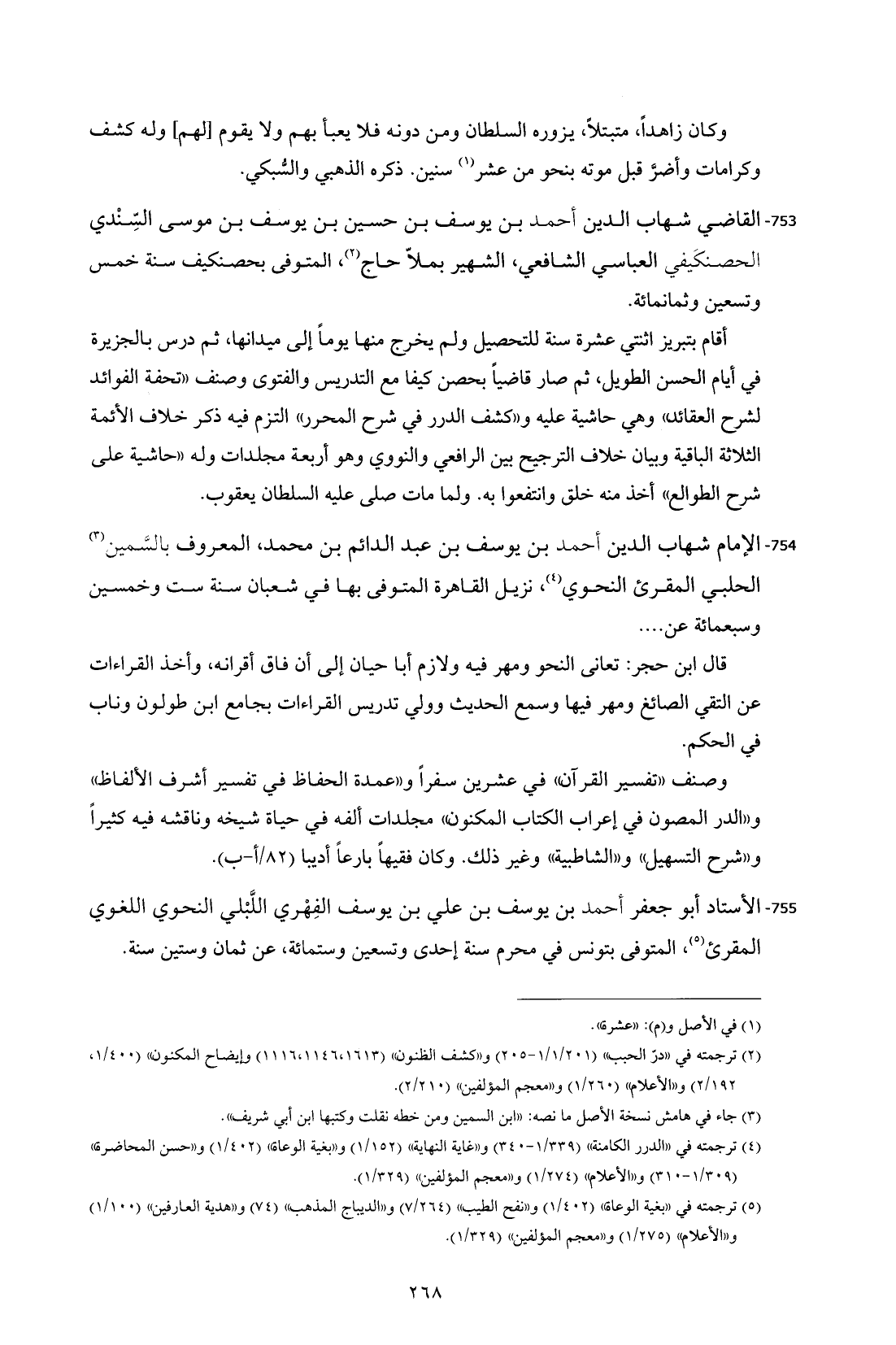 753 - القاضي شهاب الدين أحمد بن يوسف بن حسين بن يوسف بن موسى السِّنْدي الحصنكَيفي العباسي الشافعي، الشهير بملاّ حاج (¬2)، المتوفى بحصنكيف سنة خمس وتسعين وثمانمائة.