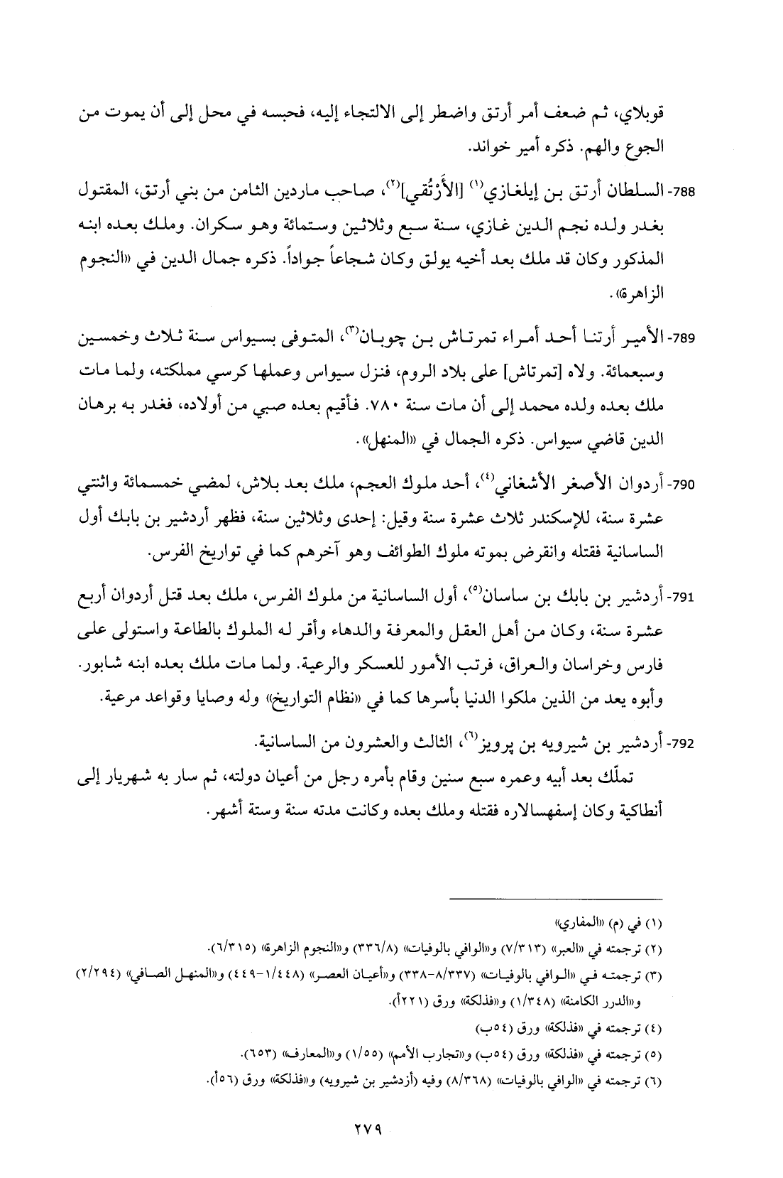 (¬6) ترجمته في "الوافي بالوفيات" (8/ 368) وفيه (أزدشير بن شيرويه) و"فذلكة" ورق (56 أ).