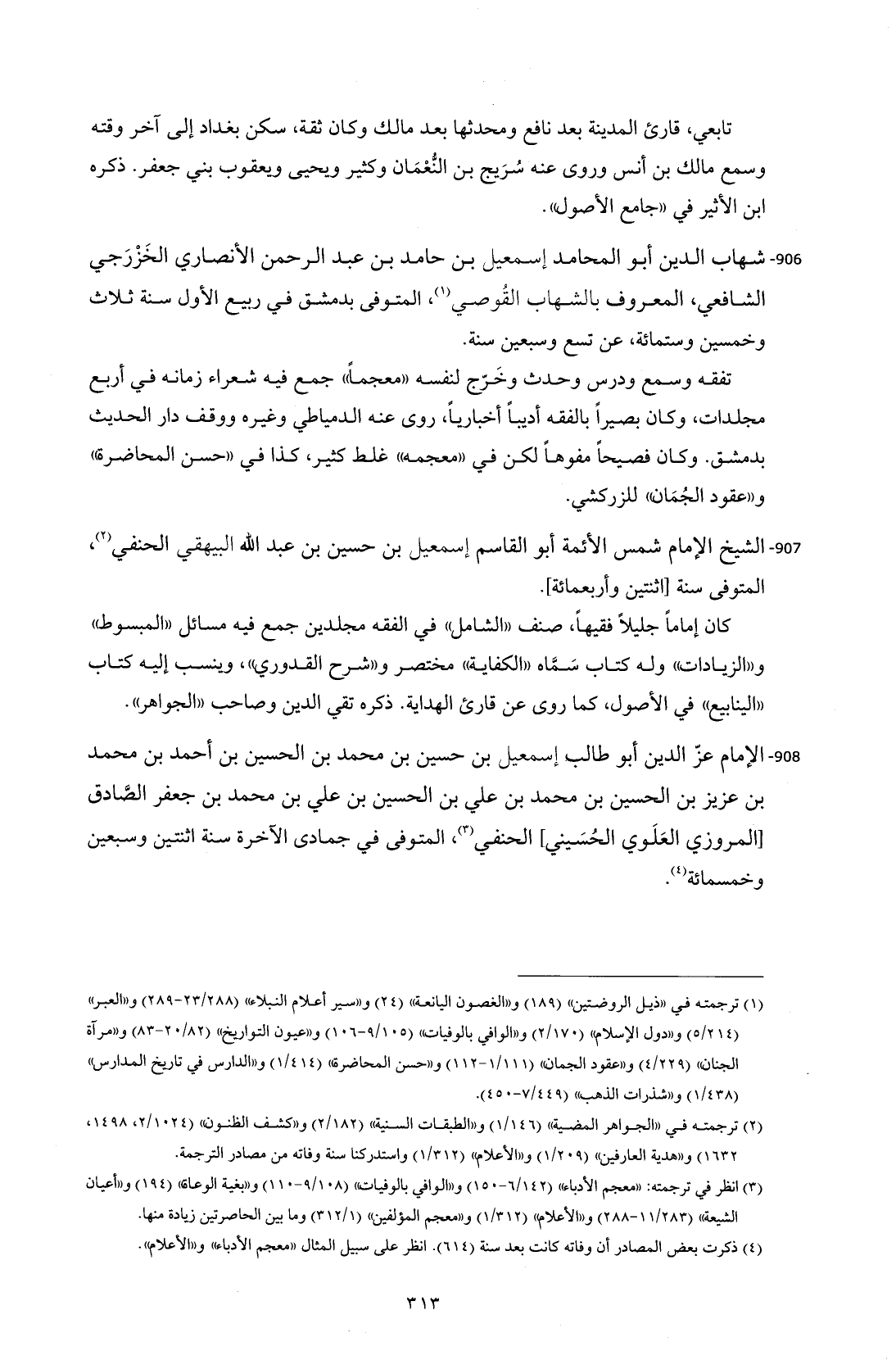 907 - الشيخ الإمام شمس الأئمة أبو القاسم إسمعيل بن حسين بن عبد الله البيهقي الحنفي (¬2)، المتوفى سنة [اثنتين وأربعمائة].