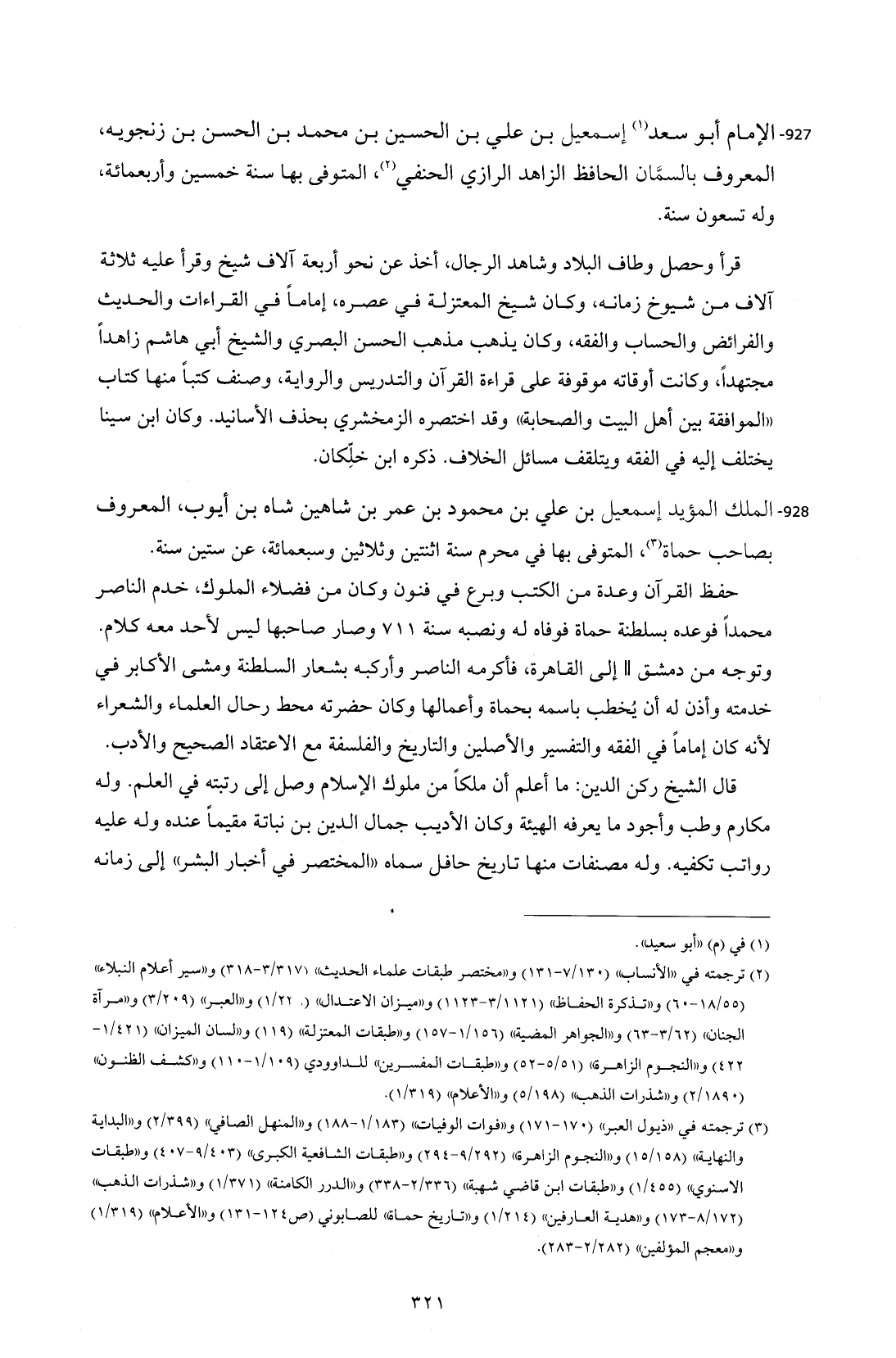 928 - الملك المؤيد إسمعيل بن علي بن محمود بن عمر بن شاهين شاه بن أيوب، المعروف بصاحب حماة (¬3)، المتوفى بها في محرم سنة اثنتين وثلاثين وسبعمائة، عن ستين سنة.