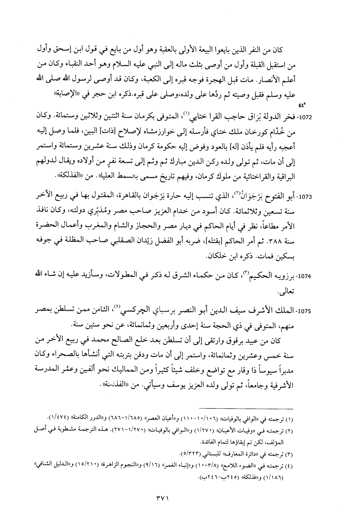 (¬2) ترجمته في "وفيات الأعيان" (1/ 270) و"الوافي بالوفيات" (1/ 270 - 271). هذه الترجمة مشطوبة في أصل المؤلف، لكن تم إبقاؤها لتمام الفائدة.