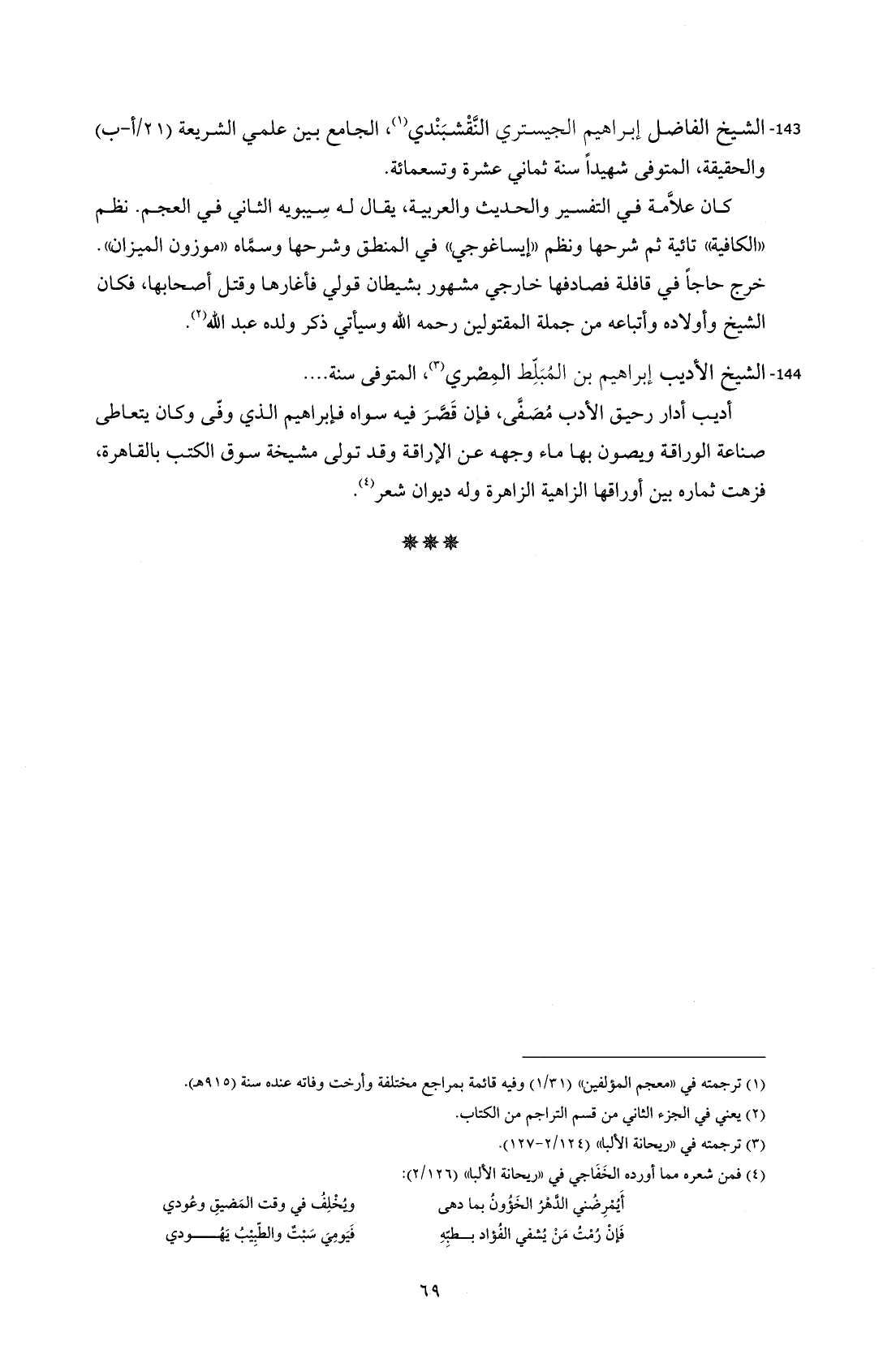 143 - الشيخ الفاضل إبراهيم الجيستري النَّقْشبَنْدي (¬1)، الجامع بين علمي الشريعة (21 / أ- ب) والحقيقة، المتوفى شهيداً سنة ثماني عشرة وتسعمائة.