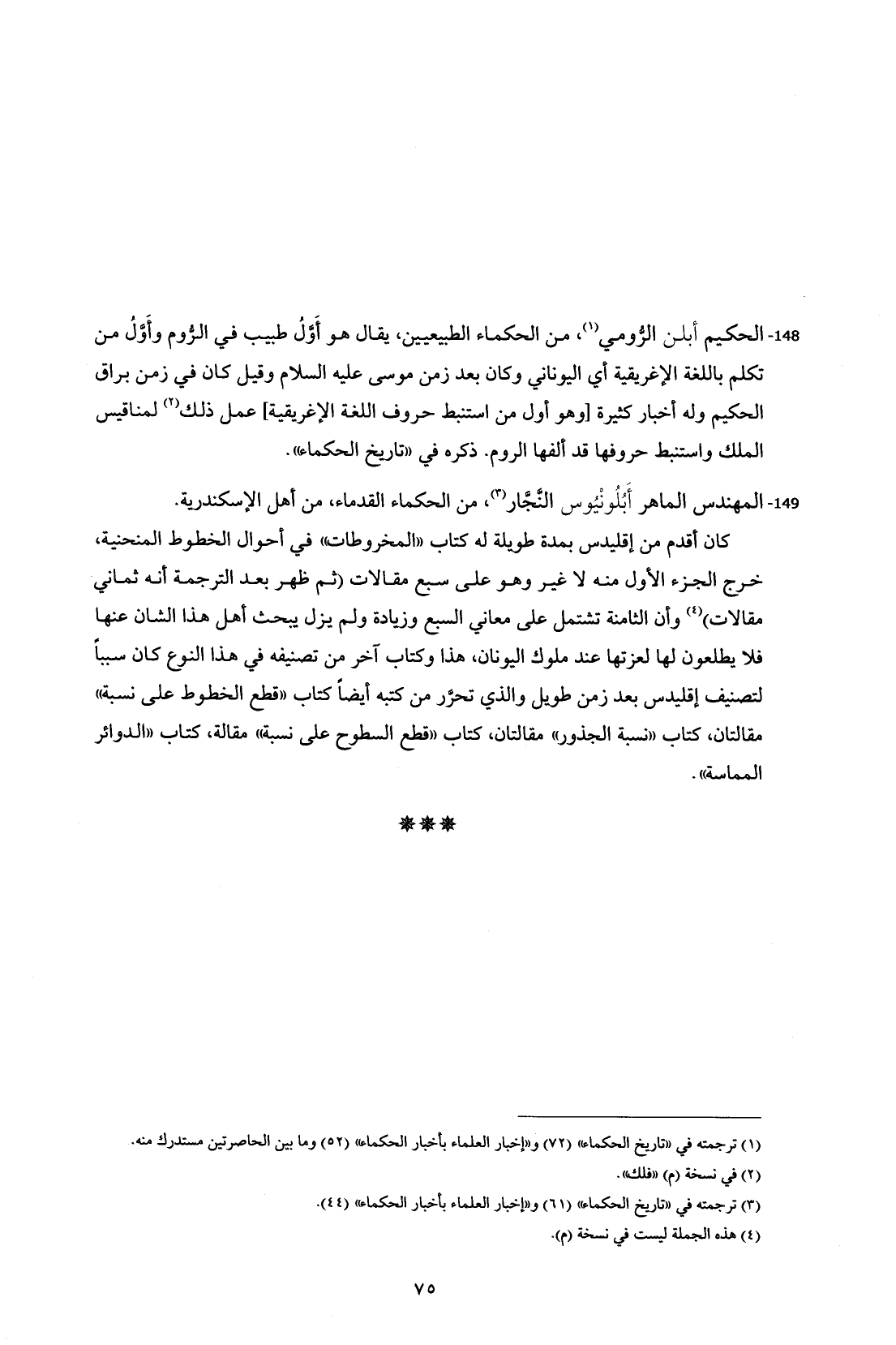 (¬3) ترجمته في "تاريخ الحكماء" (61) و"إخبار العلماء بأخبار الحكماء" (44).