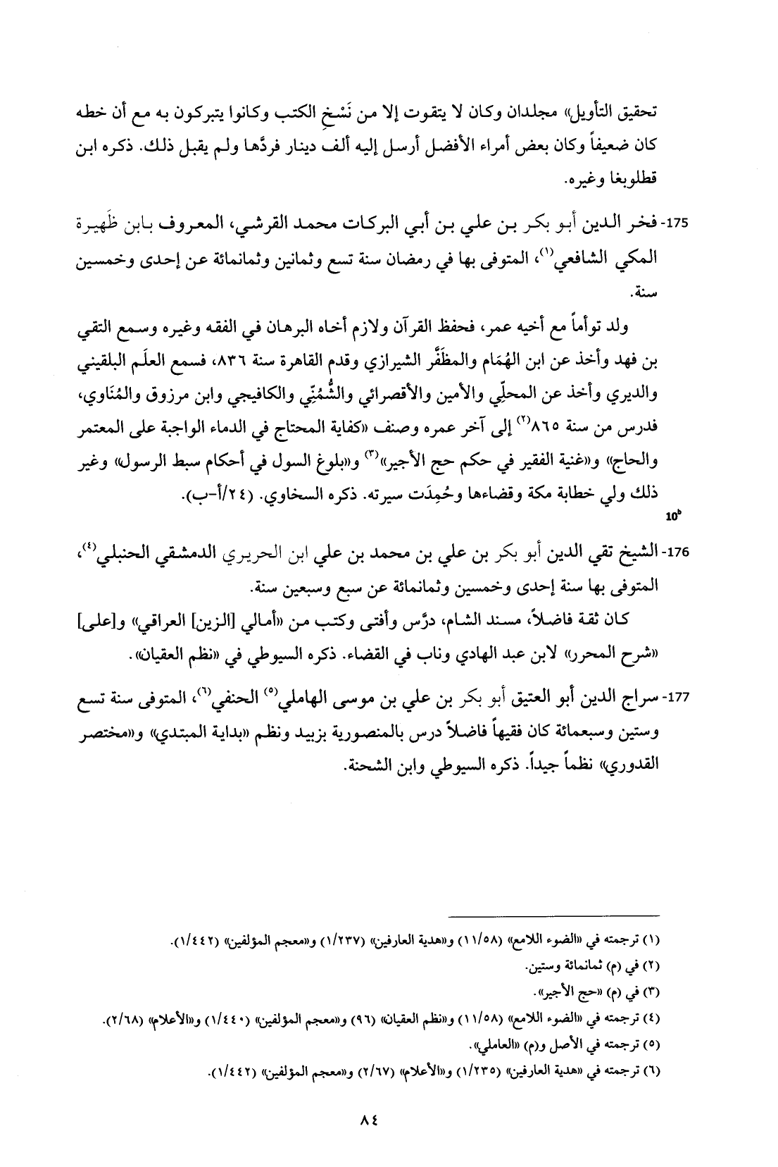 175 - فخر الدين أبو بكر بن علي بن أبي البركات محمد القرشي، المعروف بابن ظَهيرة المكي الشافعي (¬1)، المتوفى بها في رمضان سنة تسع وثمانين وثمانمائة عن إحدى وخمسين سنة.