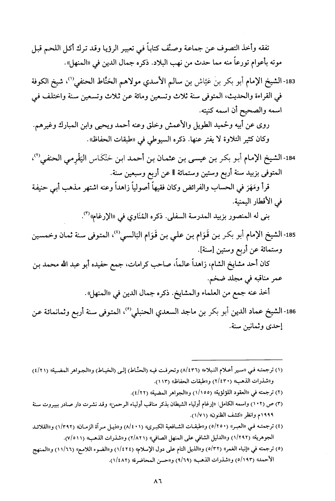 186 - الشيخ عماد الدين أبو بكر بن ماجد السعدي الحنبلي (¬5)، المتوفى سنة أربع وثمانمائة عن إحدى وثمانين سنة.