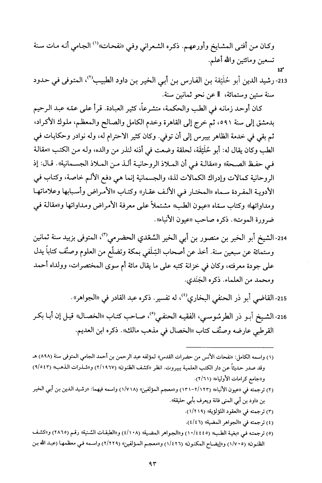 (¬5) ترجمته في "بغية الطب" (10/ 4445) و"الجواهر المضية" (4/ 108) و"الطبقات السَّنية" رقم (2865) و"كشف الظنون" (1/ 705) و"إيضاح المكنون" (1/ 426) و"معجم المؤلفين" (2/ 229) واسمه في معظيها (عبد الله بن